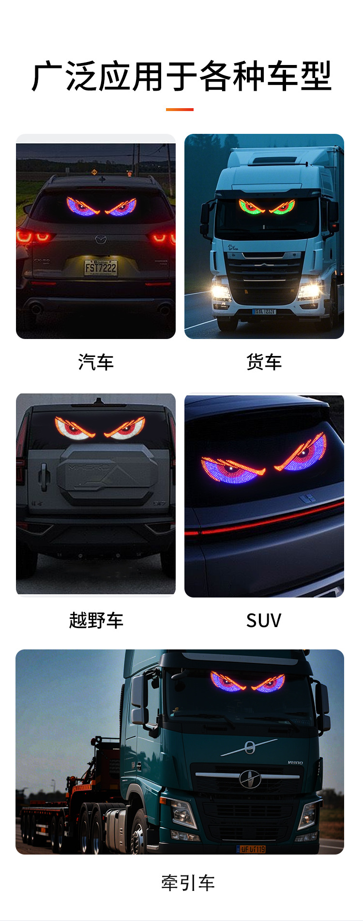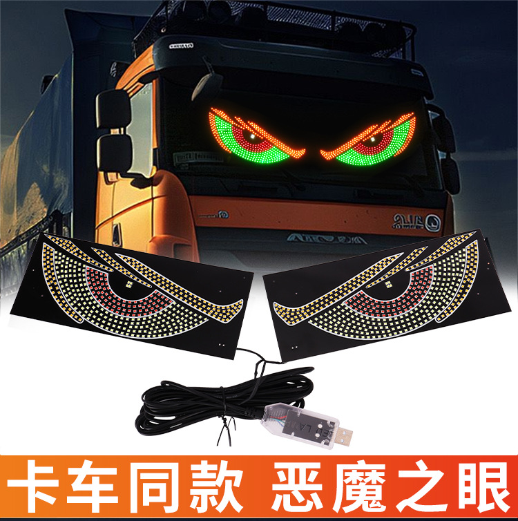 국경 간 동적 악마의 눈 램프 개조 대형 트럭 자동차 스티커 LED 디스플레이 자동차 후면 유리 장식 램프