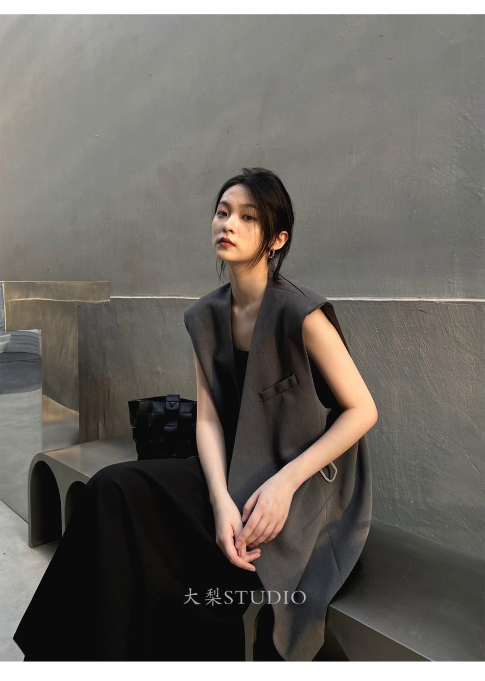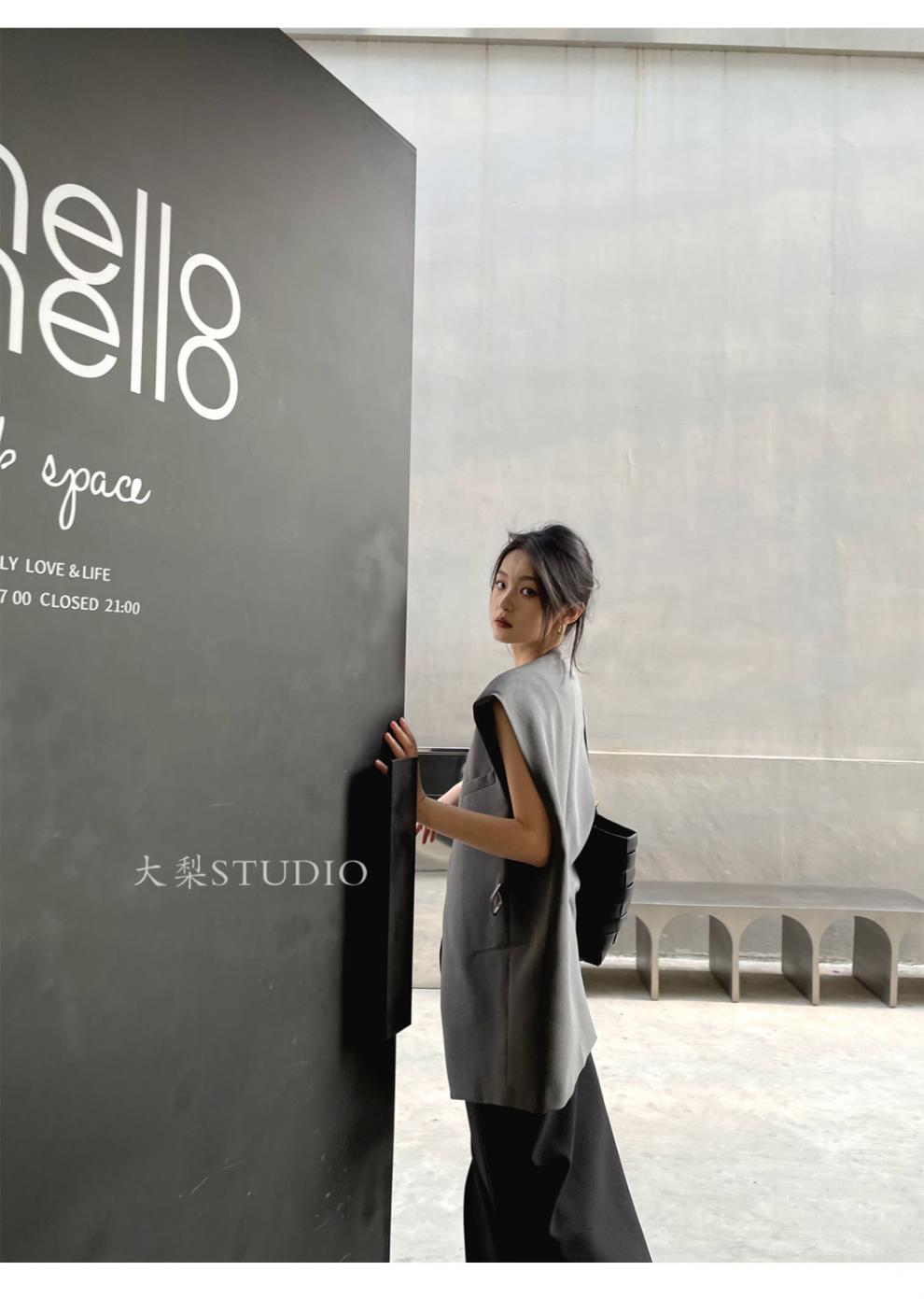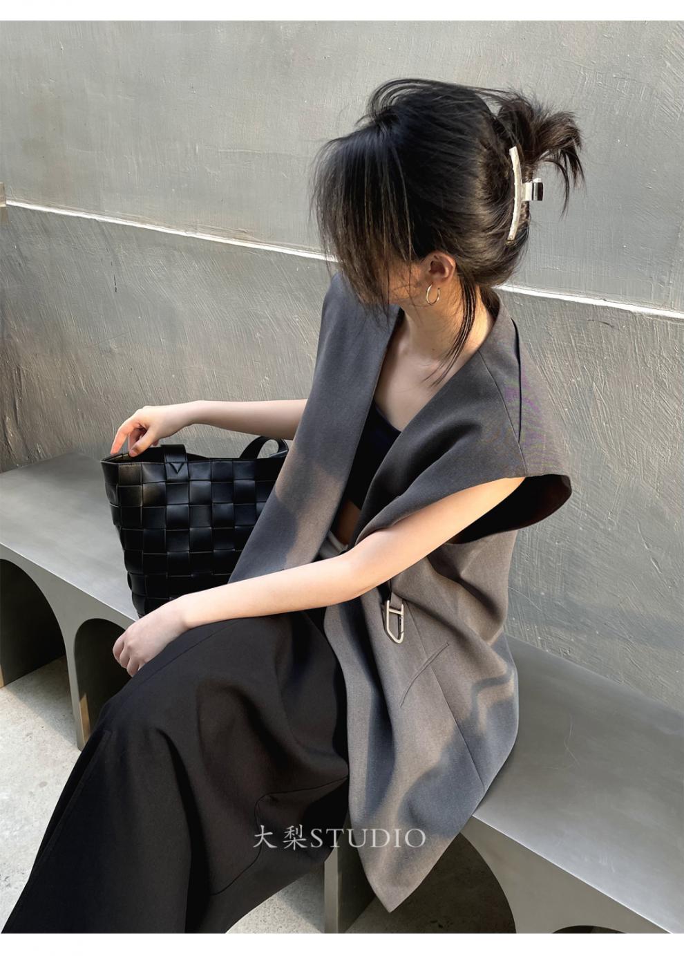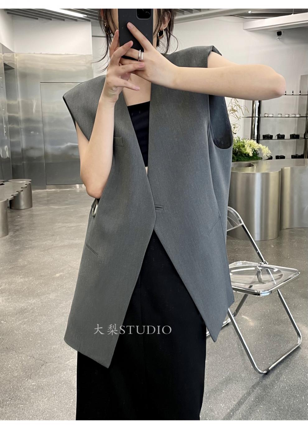 2024年夏季新款设计感无领坎肩西装马甲女韩版宽松中长款无袖外套