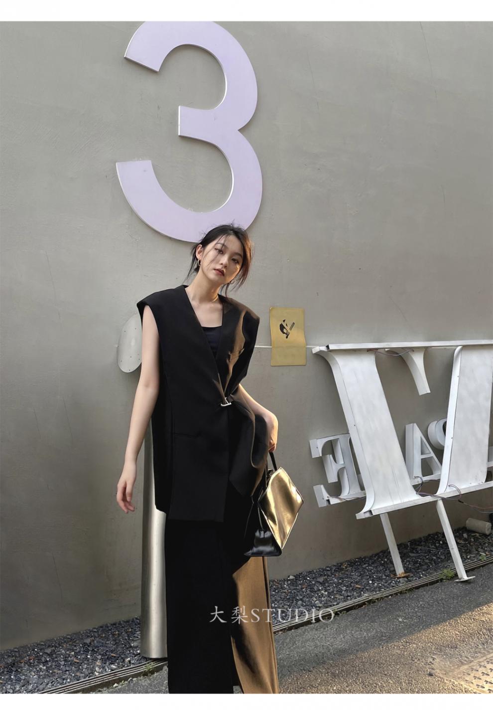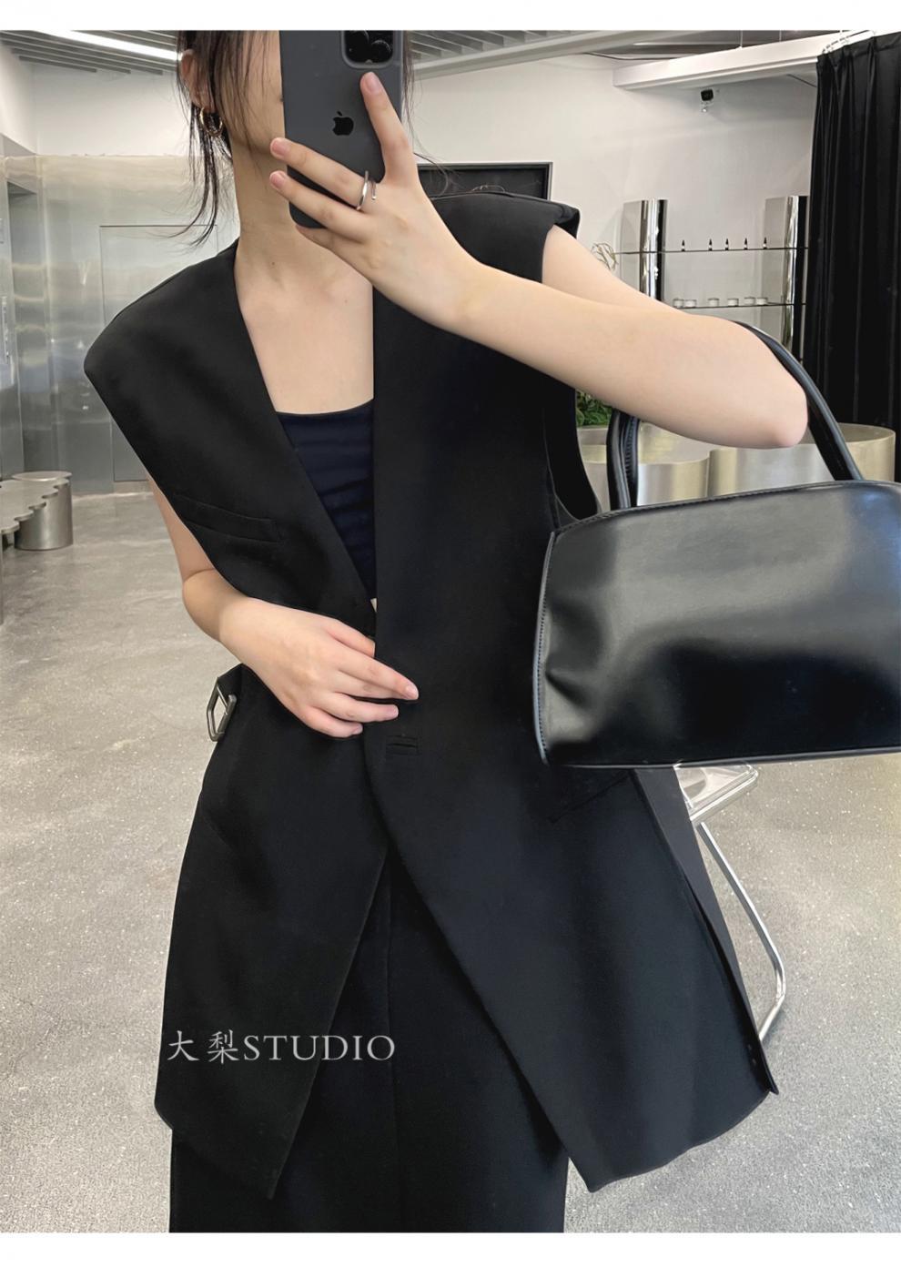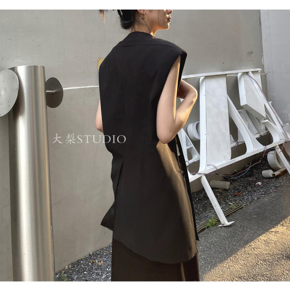 2024年夏季新款设计感无领坎肩西装马甲女韩版宽松中长款无袖外套