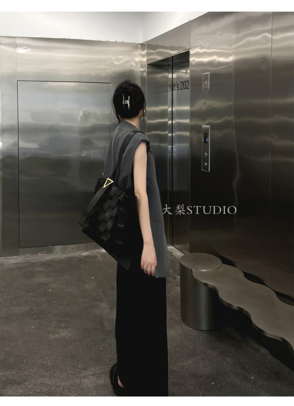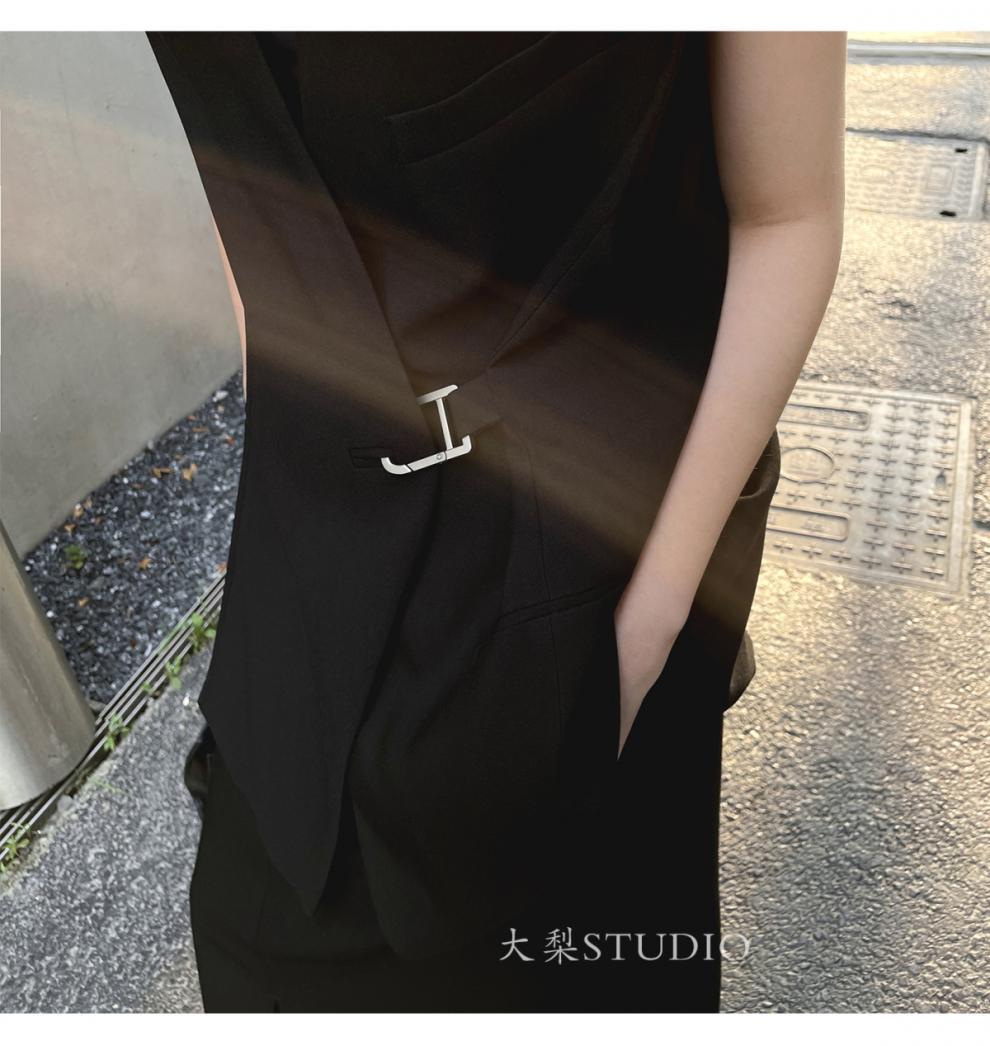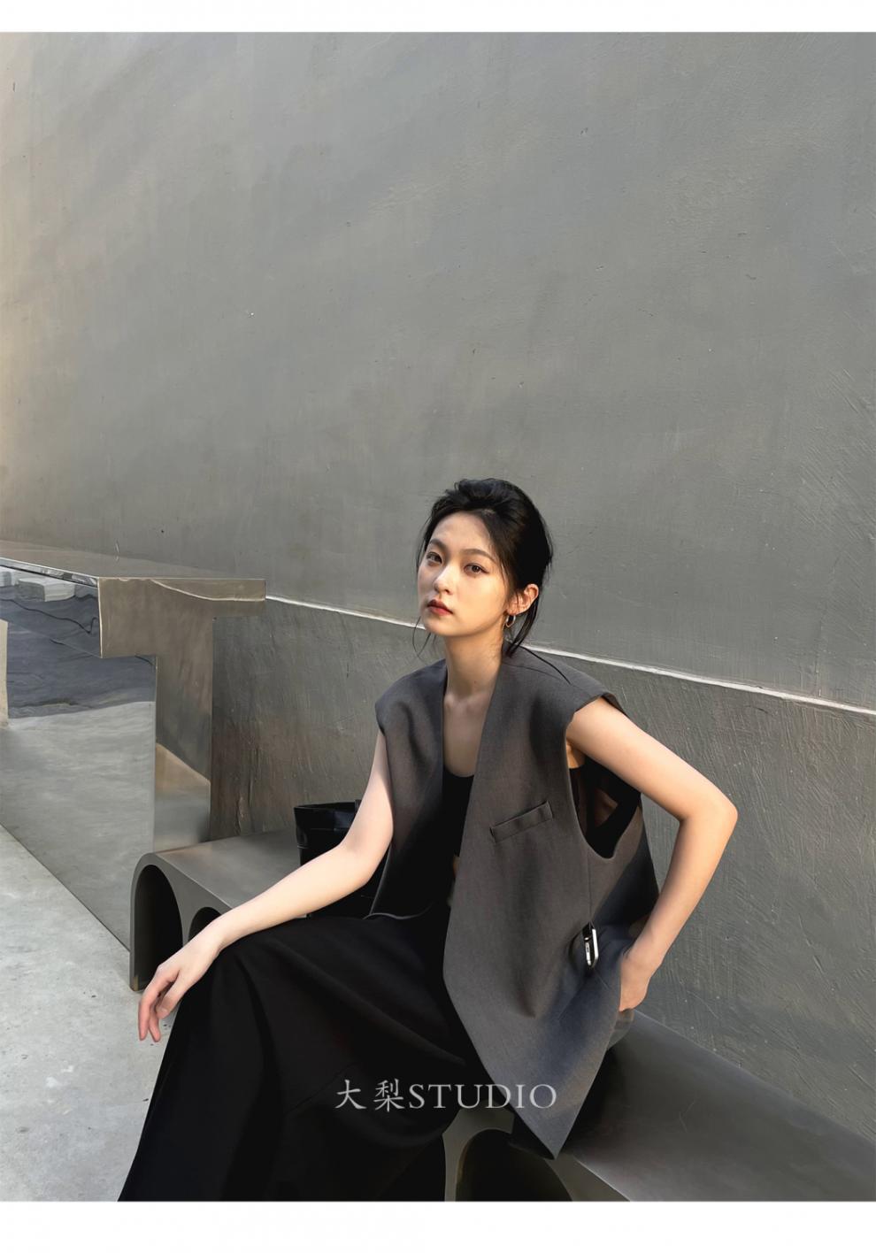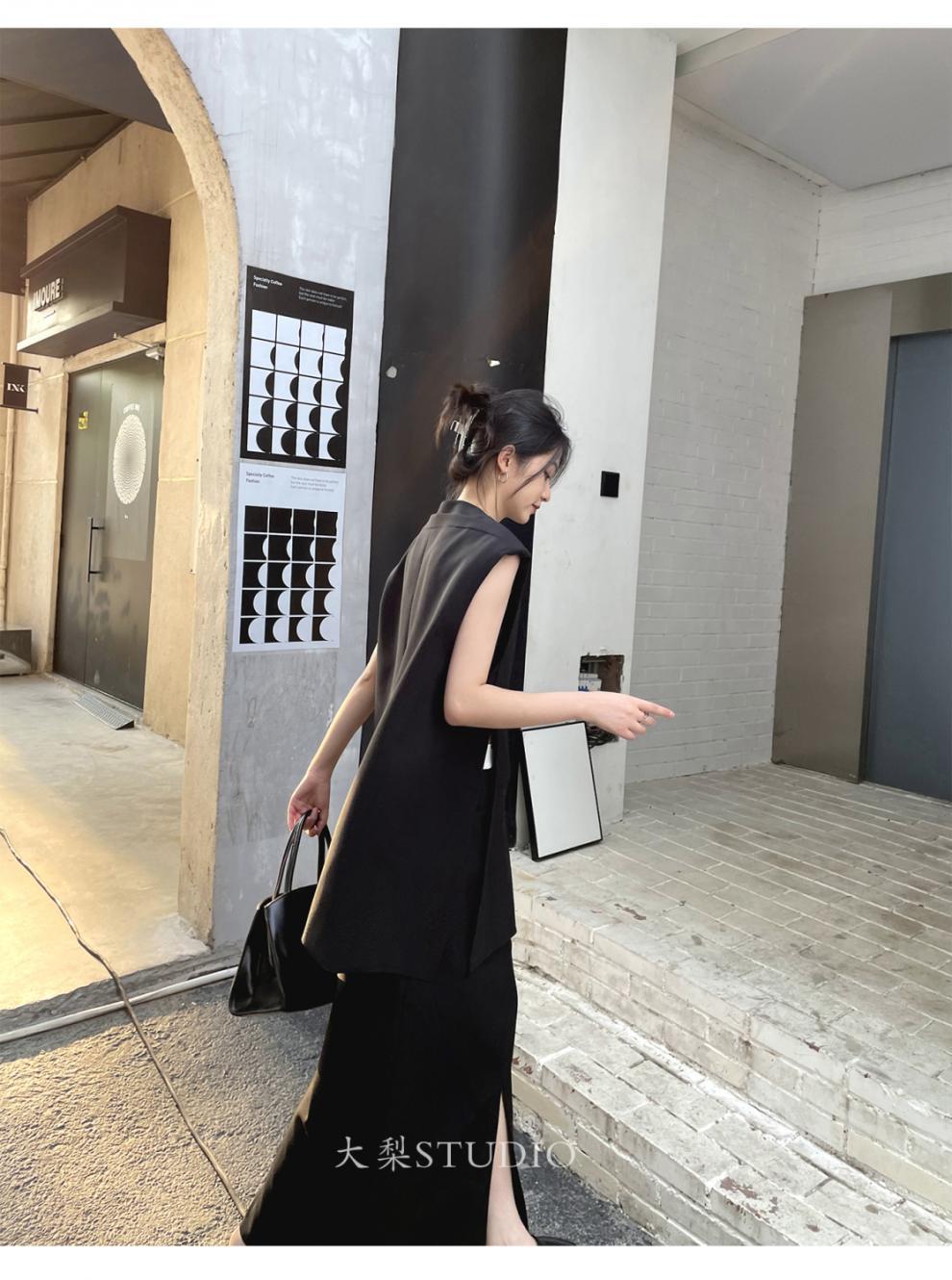 2024年夏季新款设计感无领坎肩西装马甲女韩版宽松中长款无袖外套