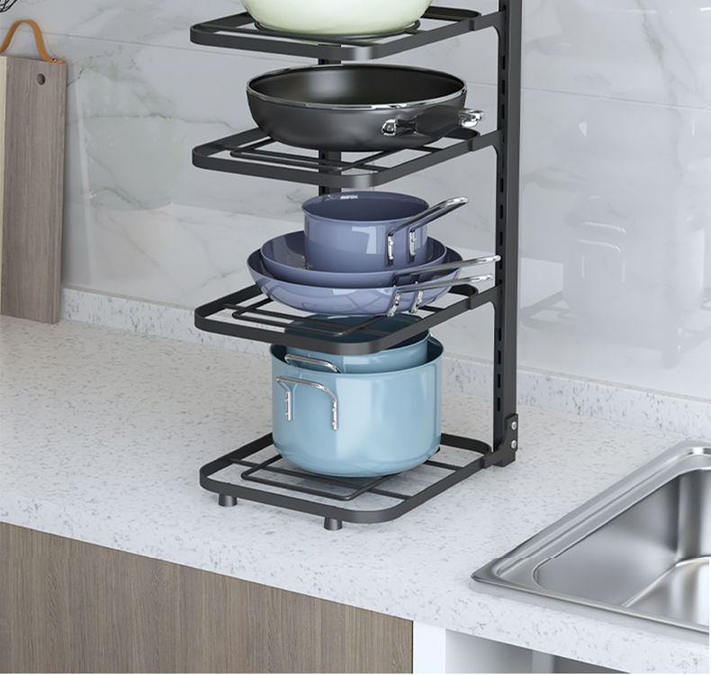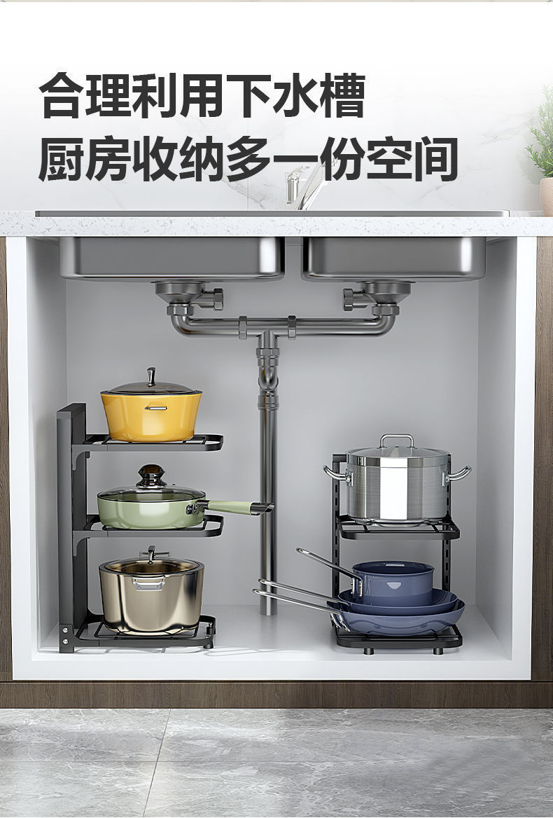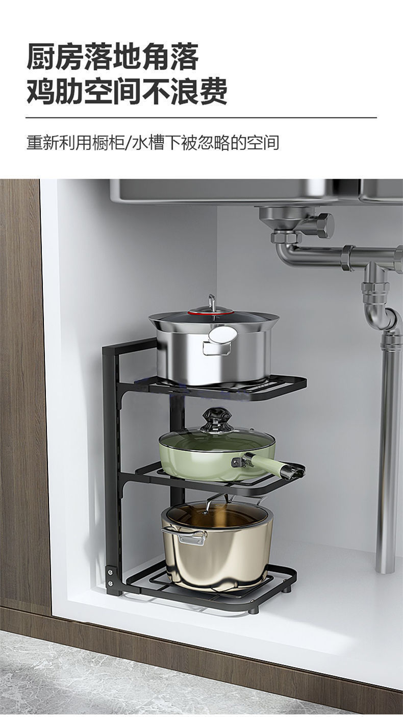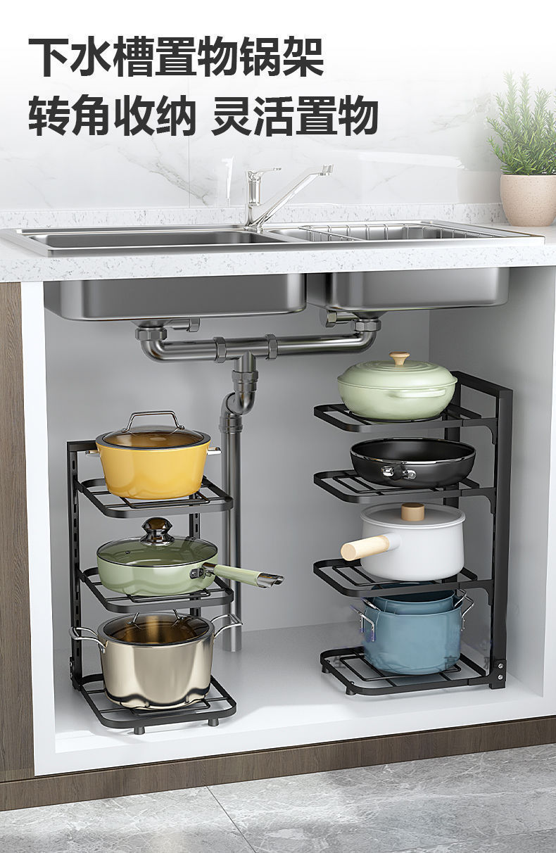 냄비를 보관할 수 있는 냄비걸이 주방 스테인리스 선반 싱크대 아래 수납선반 다층 가정용 캐비닛