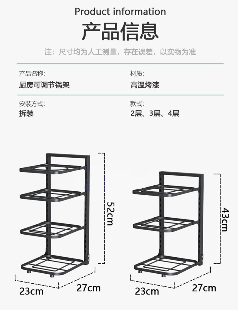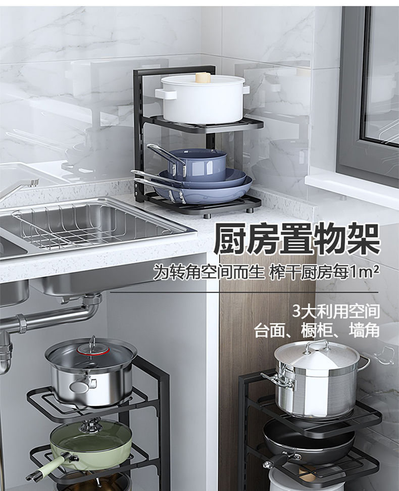 냄비를 보관할 수 있는 냄비걸이 주방 스테인리스 선반 싱크대 아래 수납선반 다층 가정용 캐비닛스토어 가기