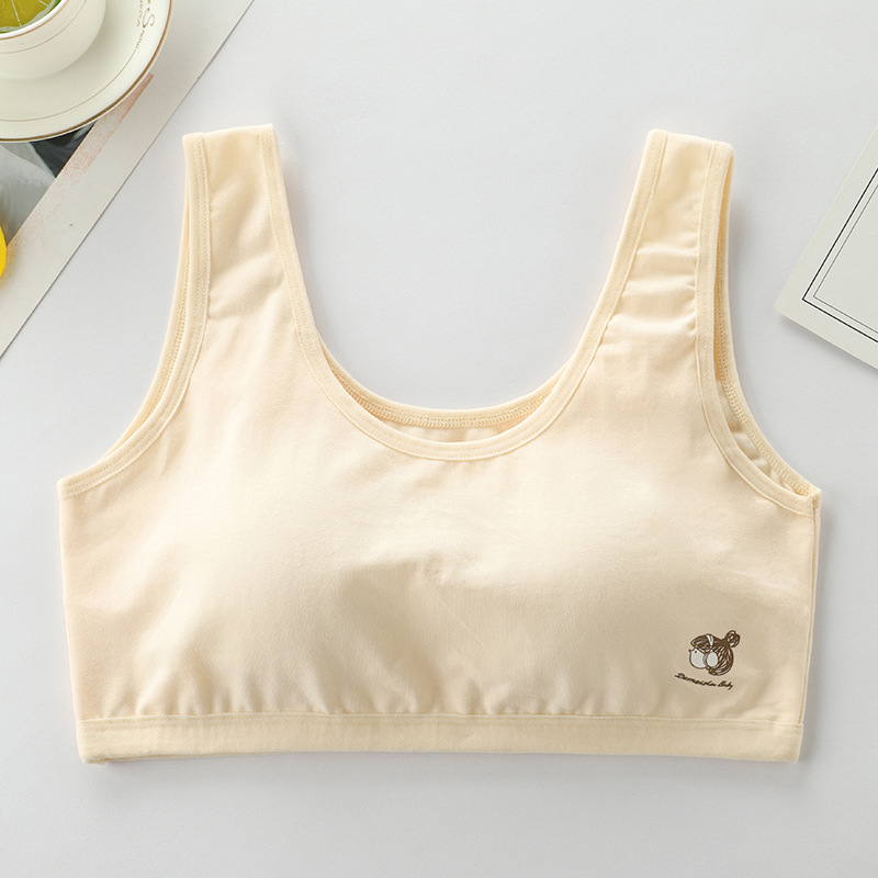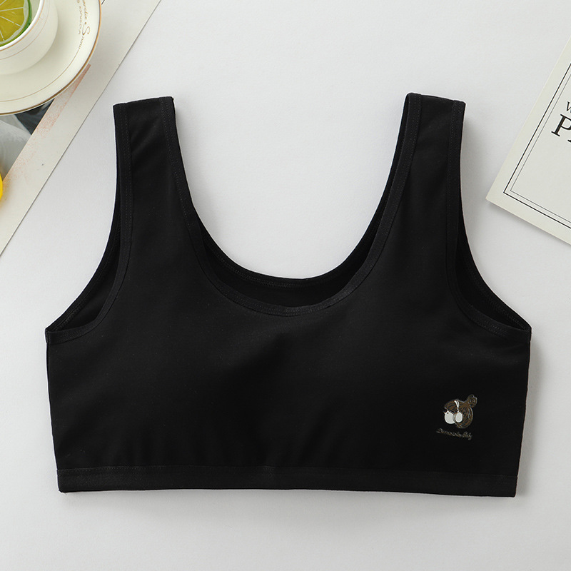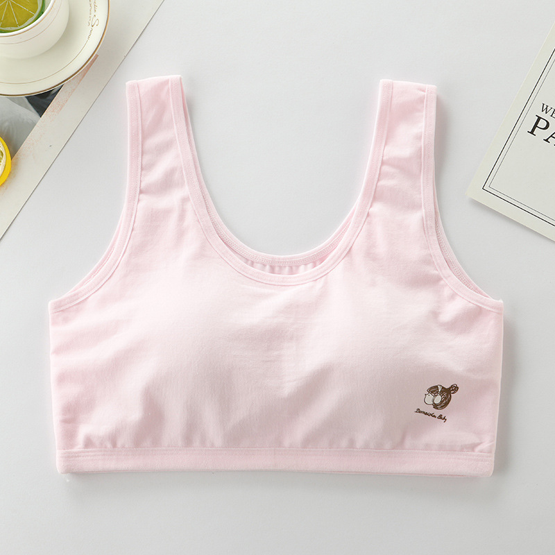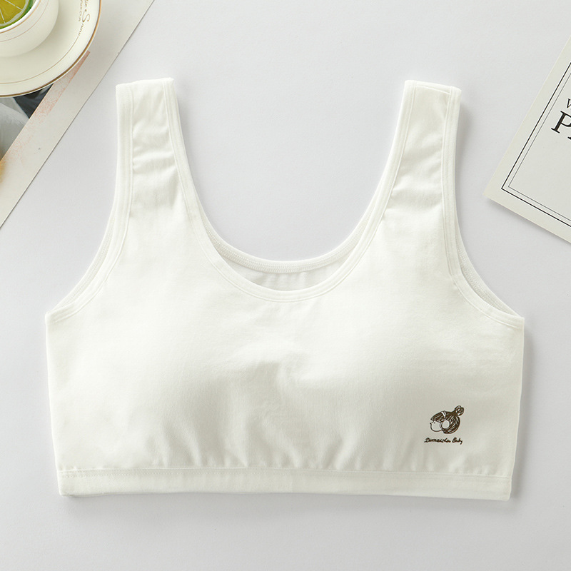 청소년 여아 속옷, 중학생 및 고등학생 발달기 스포츠 순면 조끼, 얇은 면, 와이어 없음