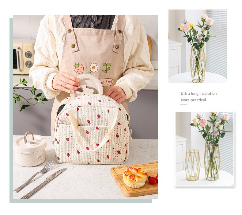 휴대용 쌀 휴대용 도시락 가방 작은 신선한 점심 가방 학생 점심 가방 절연 점심 가방