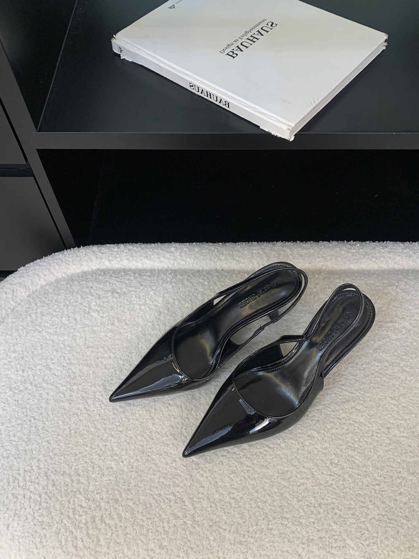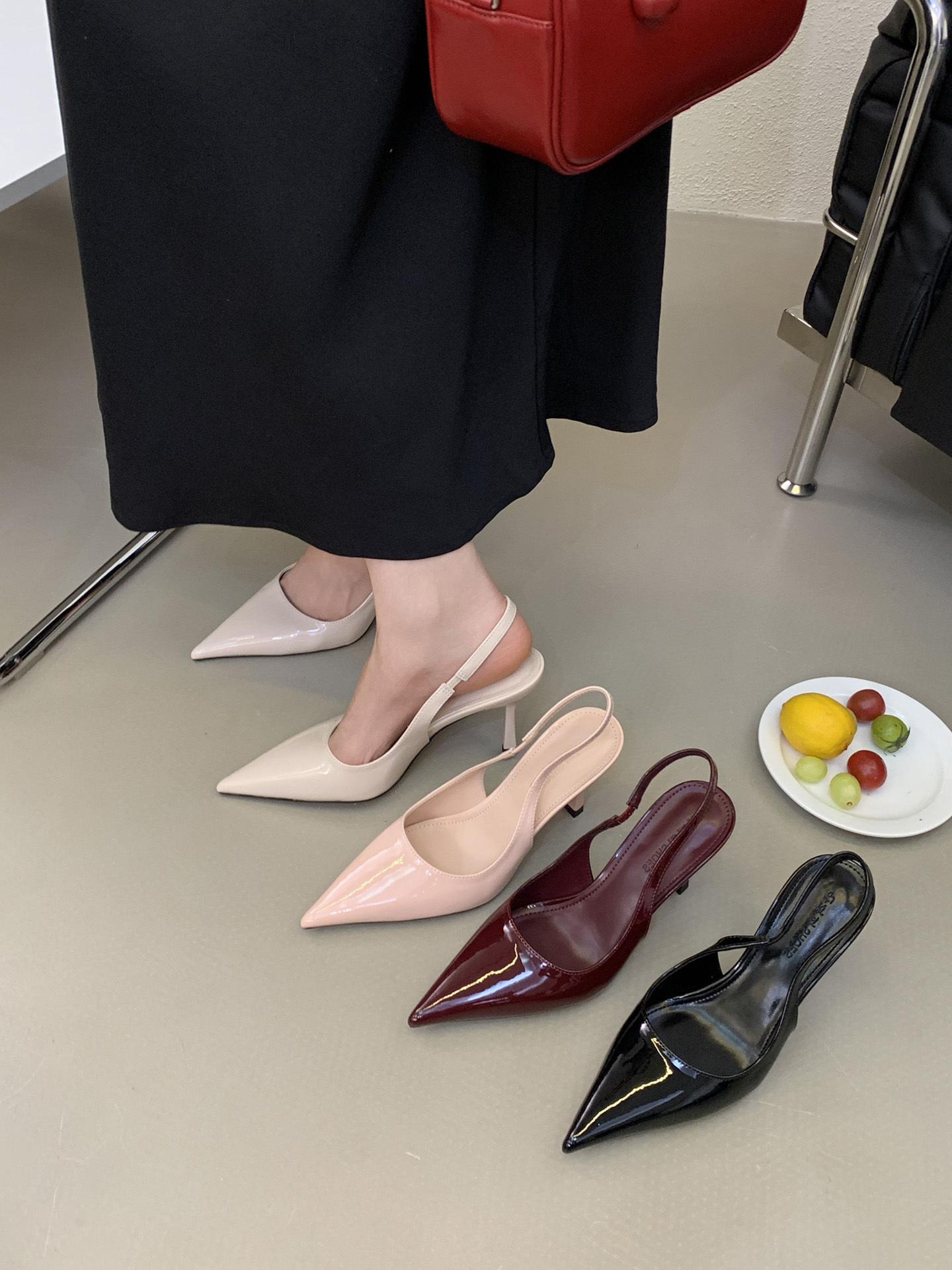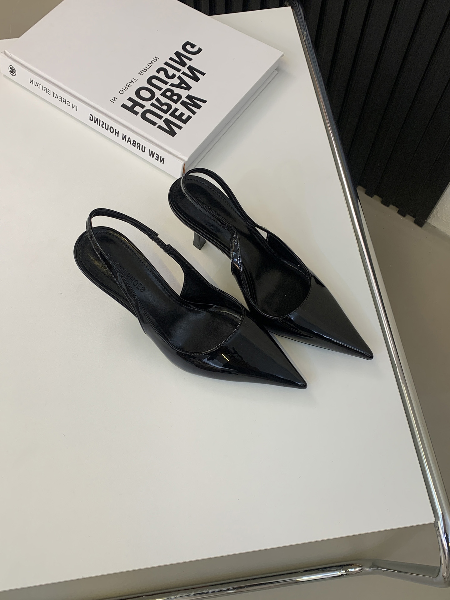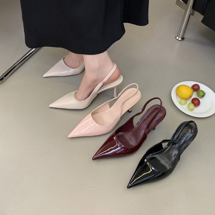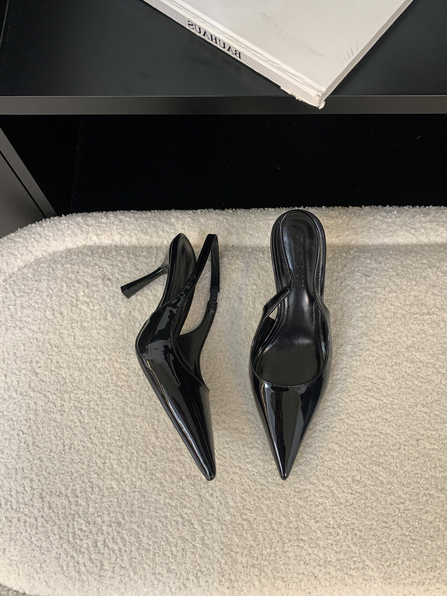 뾰족한 하이힐 여성의 새로운 틈새 신발 검은 기질 샌들 2025 여름 새로운 특허 가죽 스틸레토 샌들스토어 가기
