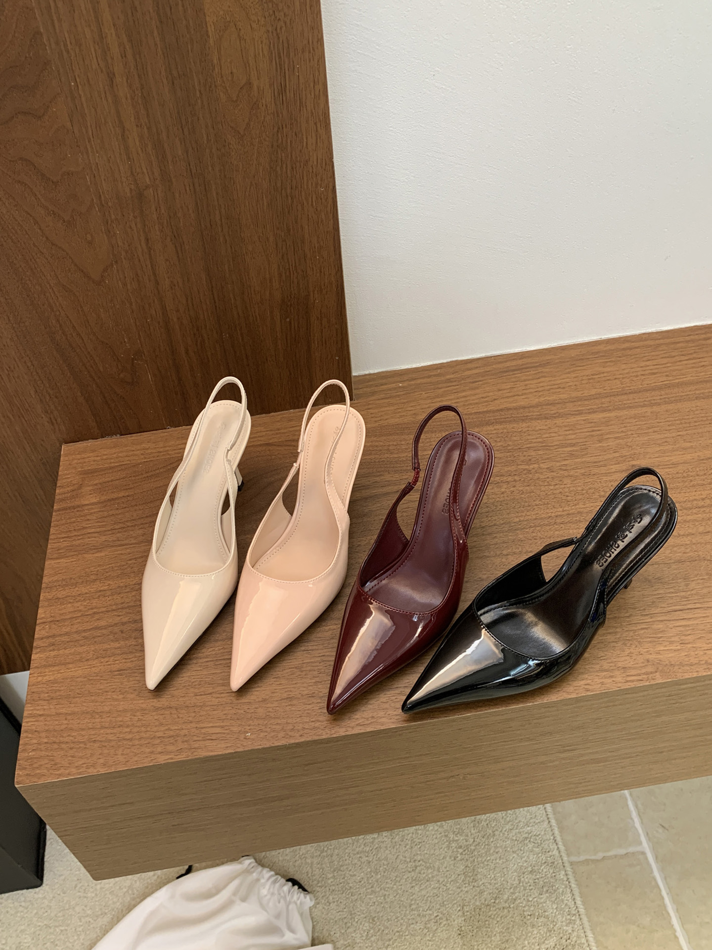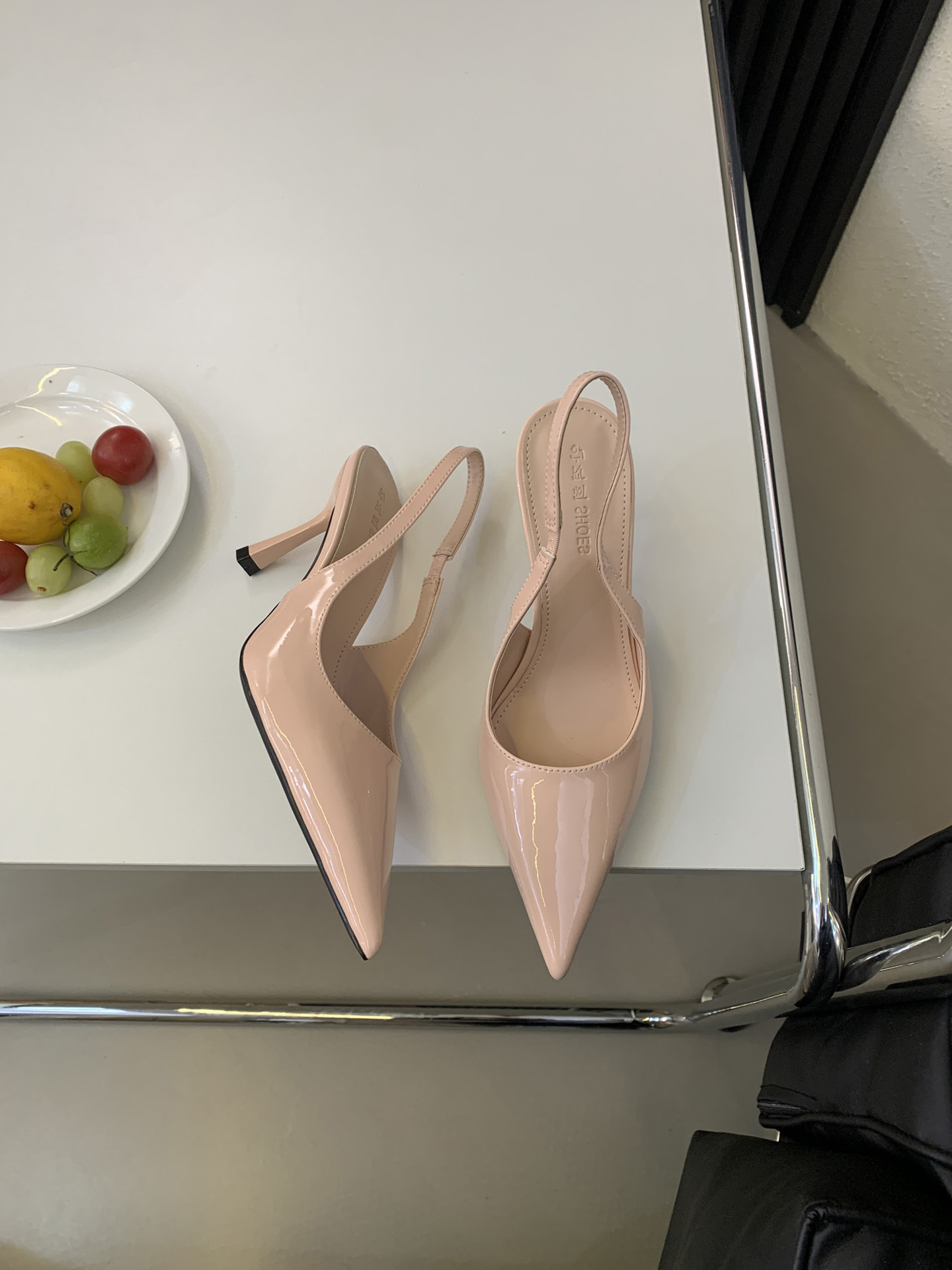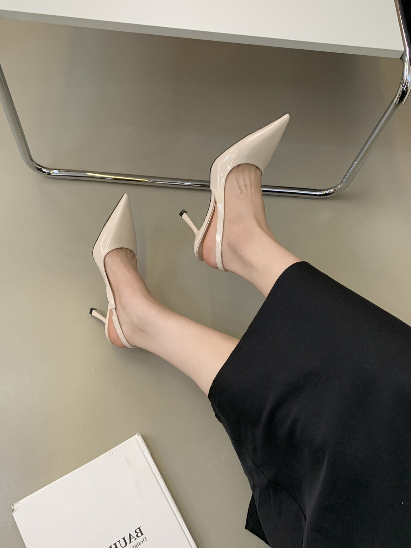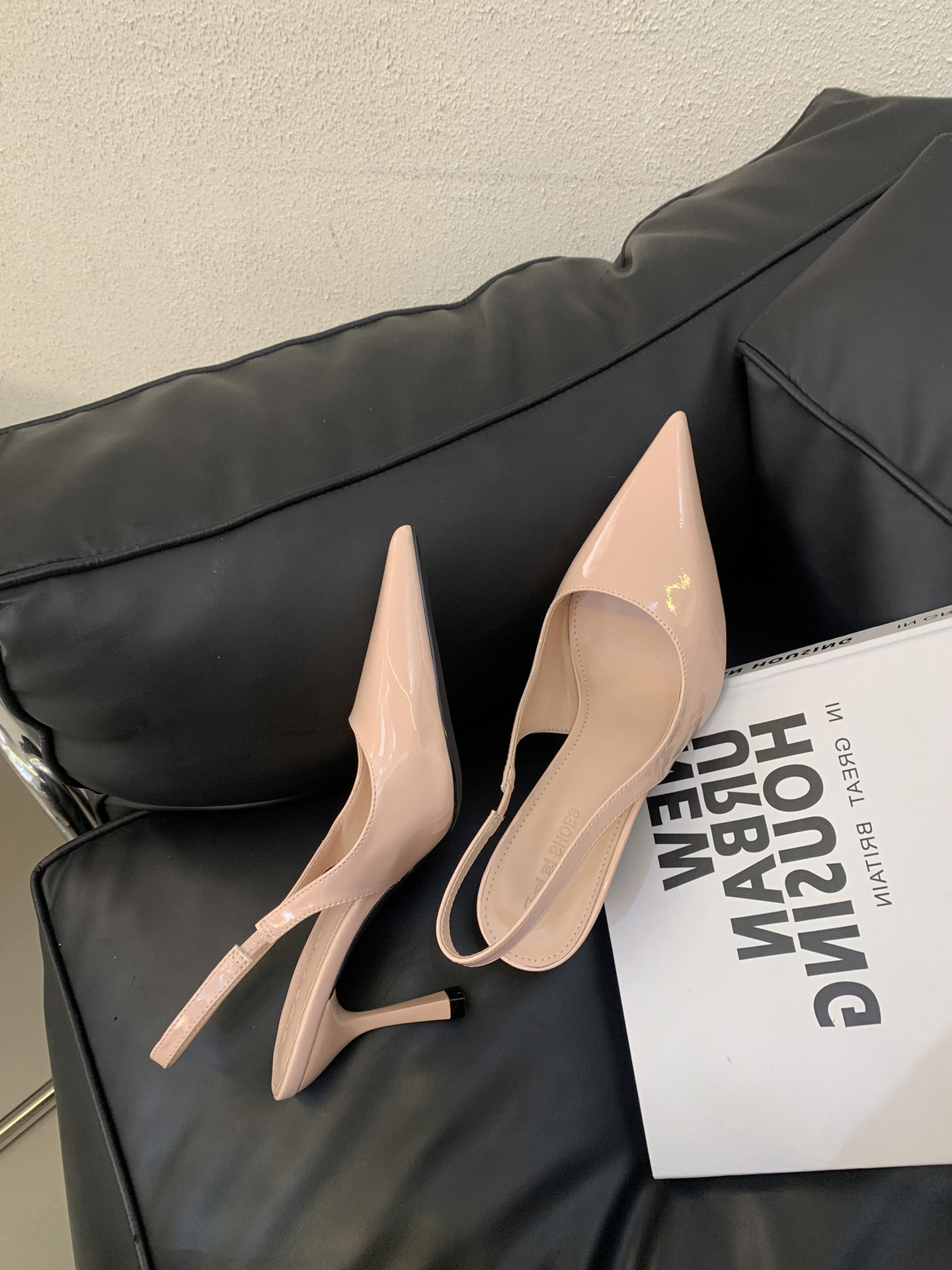 뾰족한 하이힐 여성의 새로운 틈새 신발 검은 기질 샌들 2025 여름 새로운 특허 가죽 스틸레토 샌들스토어 가기