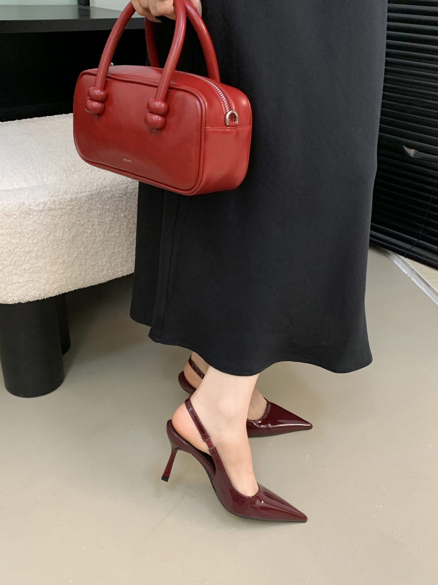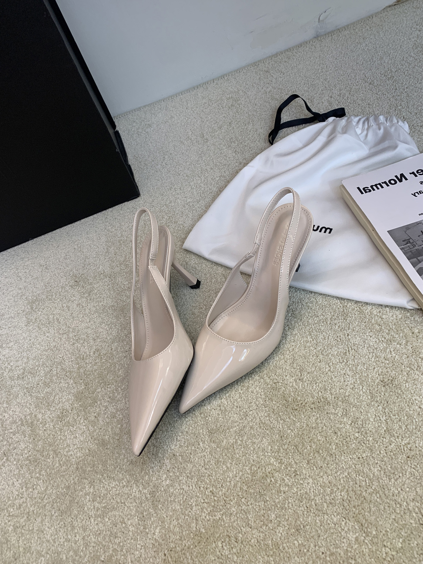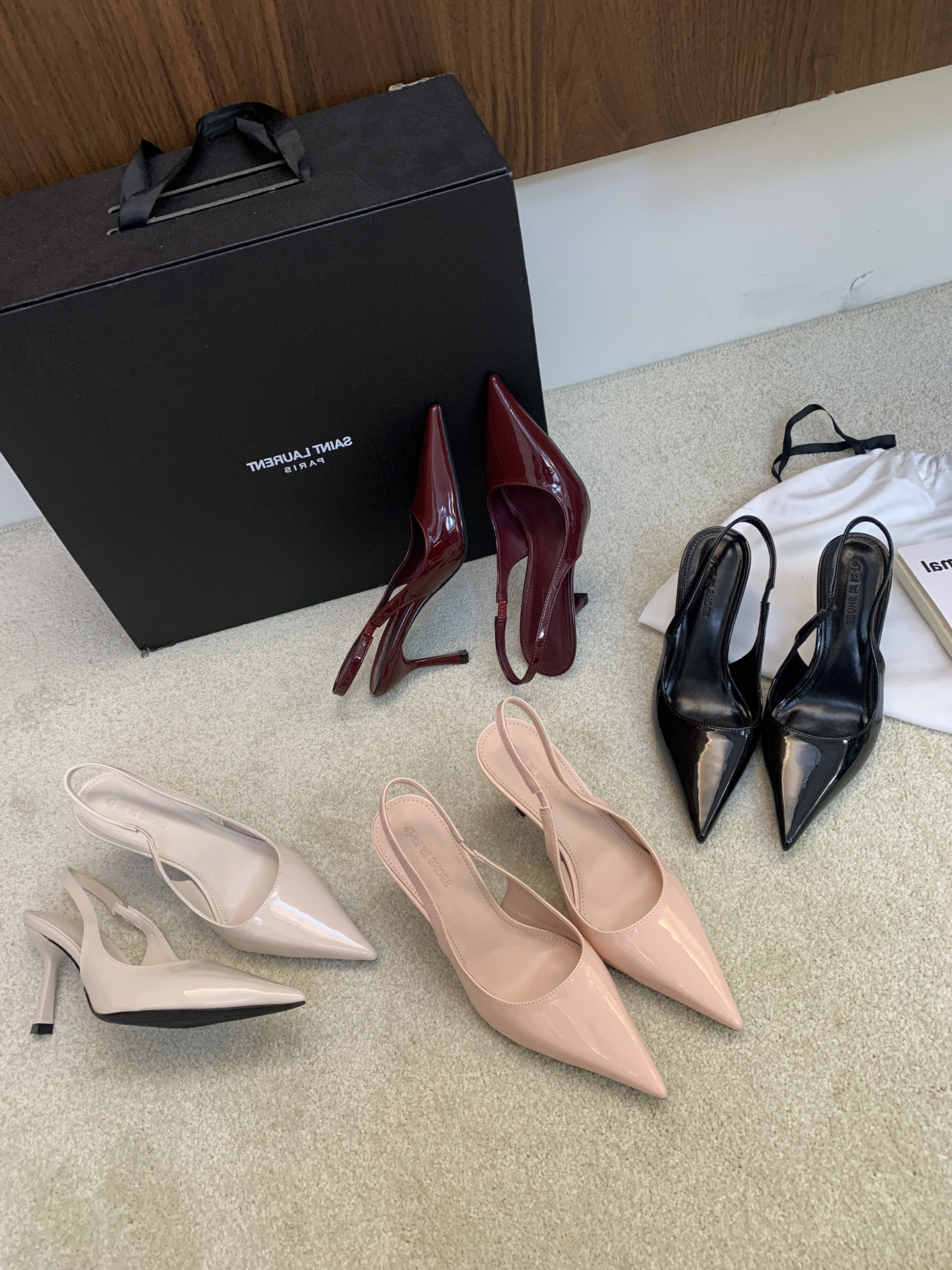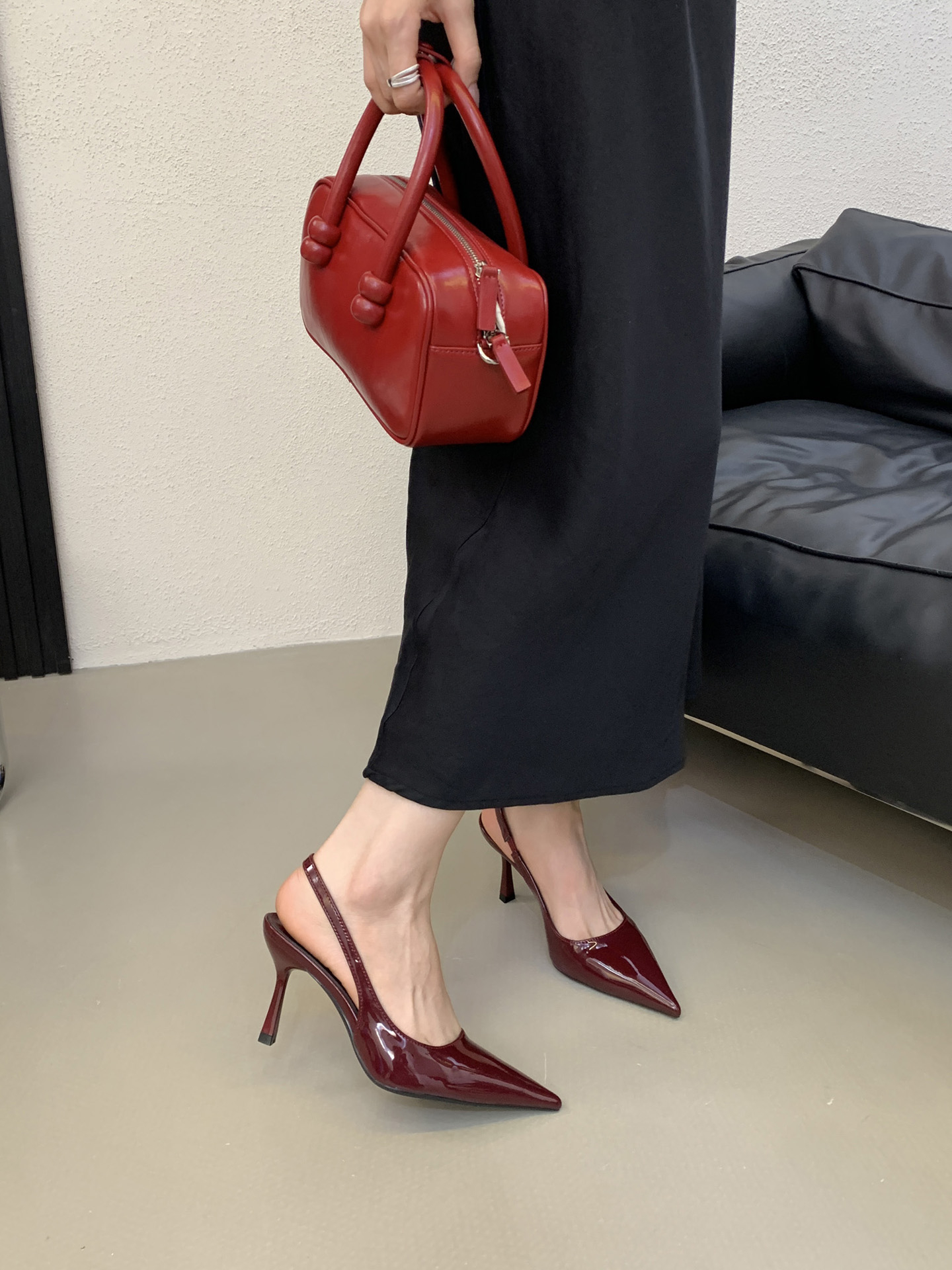 뾰족한 하이힐 여성의 새로운 틈새 신발 검은 기질 샌들 2025 여름 새로운 특허 가죽 스틸레토 샌들스토어 가기