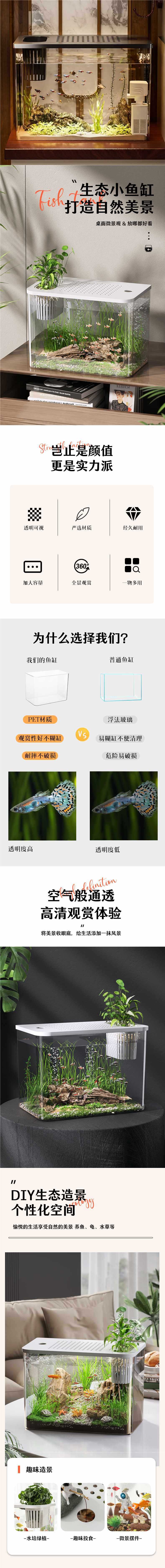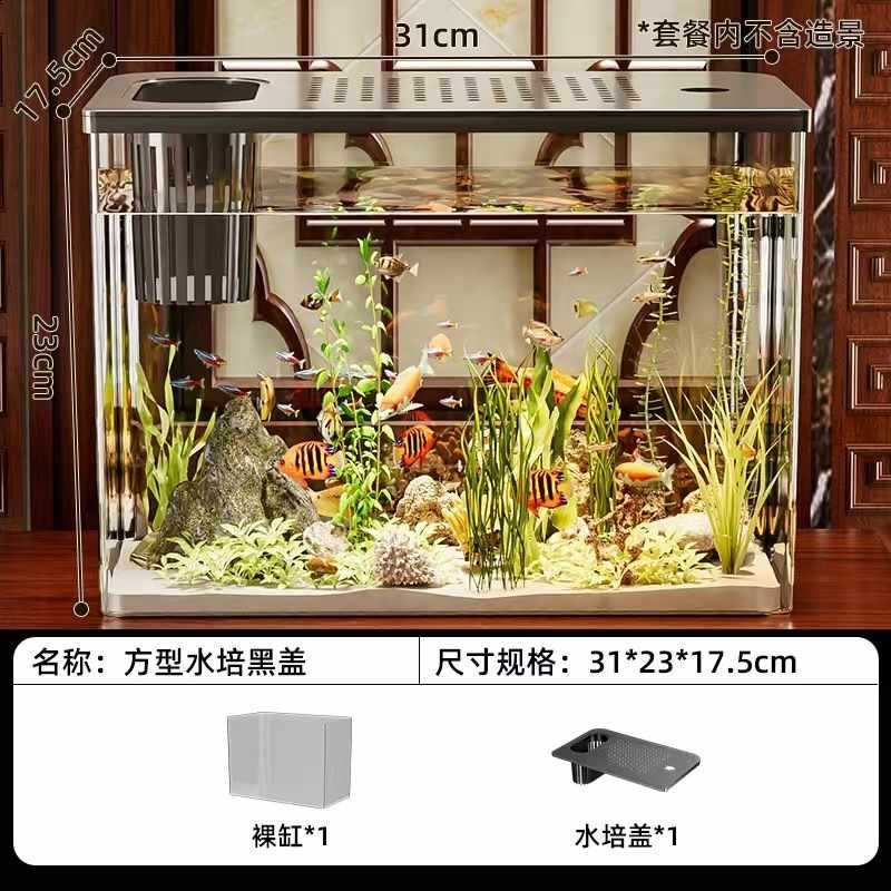 투명한 데스크탑 생태 금붕어 탱크 수족관 홈 거실 조경 작은 게으른 물고기 탱크 일체형스토어 가기