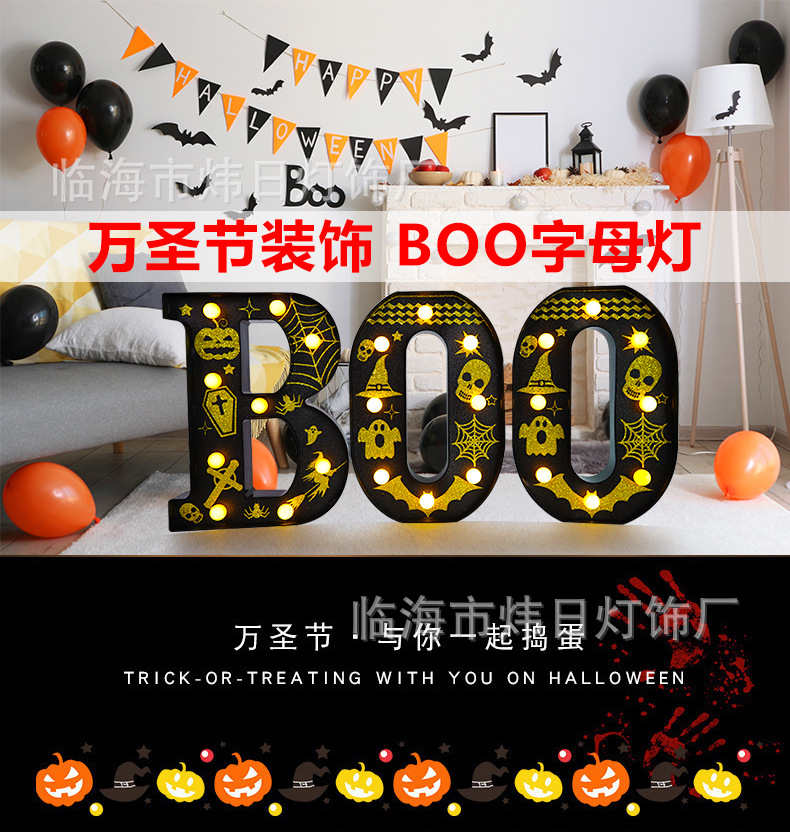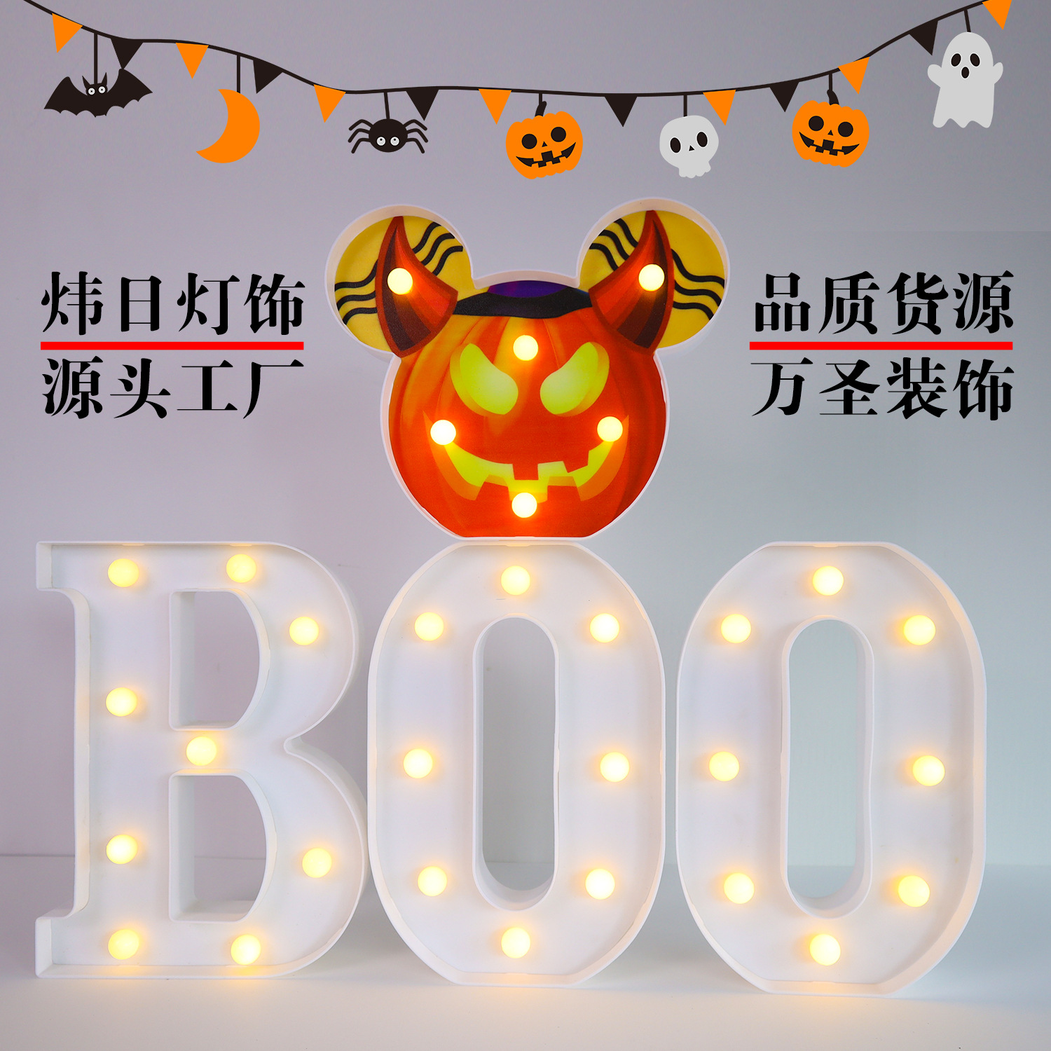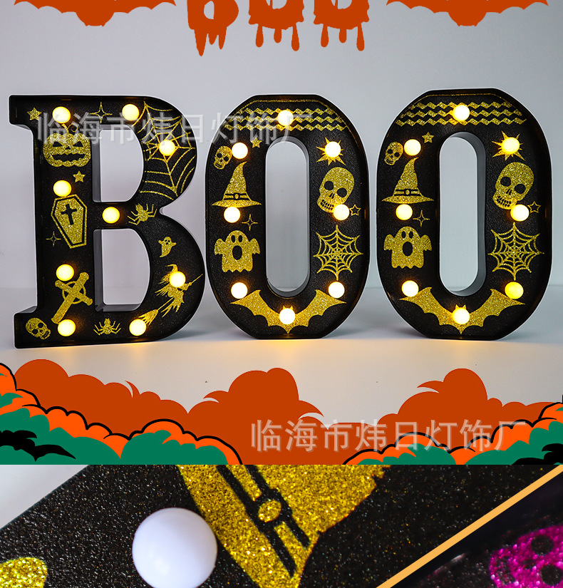 오프셋 인쇄 부 문자 조명 LED 할로윈 장면 레이아웃 장식 분위기 조명 데스크탑 빛나는 공포 소품 라이트 태그스토어 가기