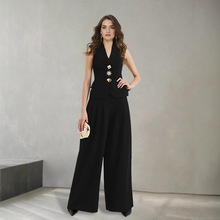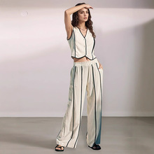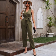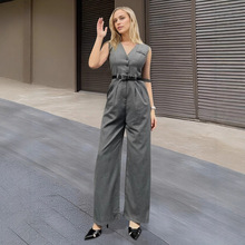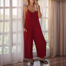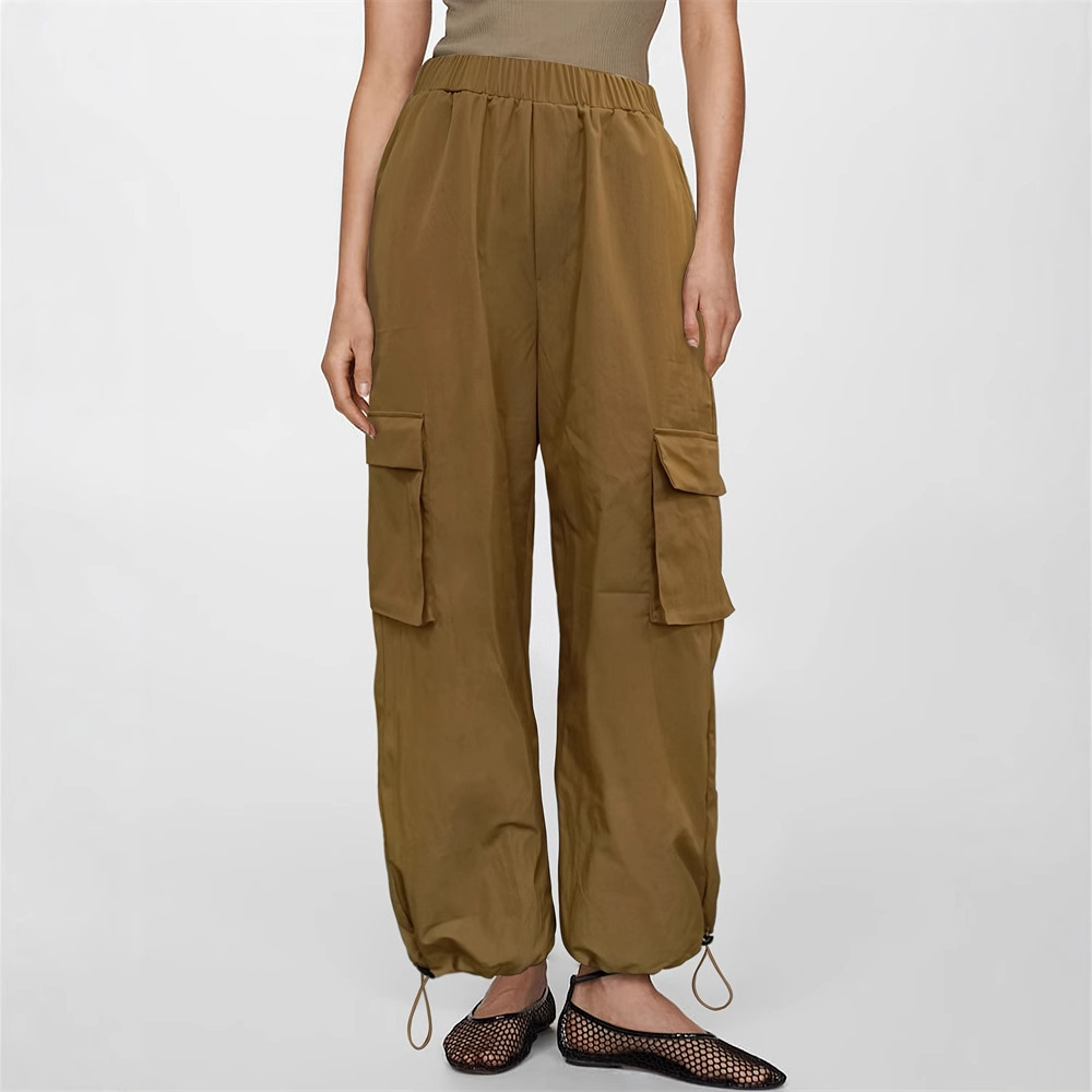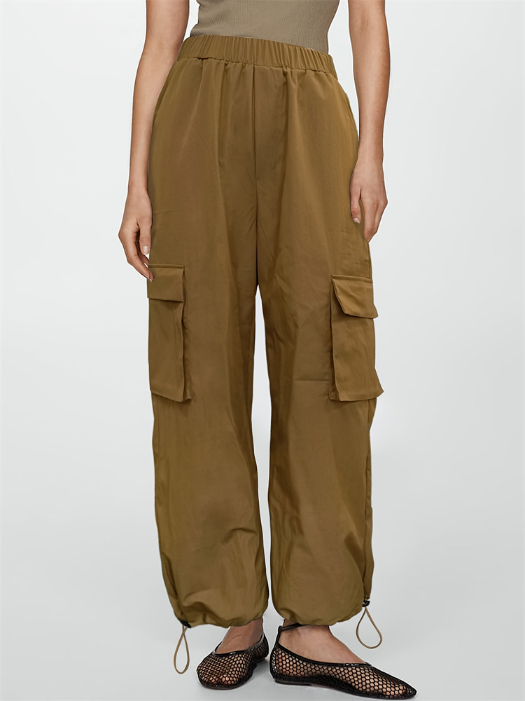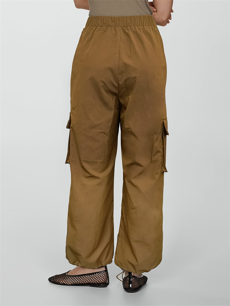 캐주얼한 사이드 포켓 디자인과 발목에 신축성 있는 로프 스트랩이 있는 여성용 아메리칸 스타일 쉬크 팬츠, 발목이 루즈한 오버올