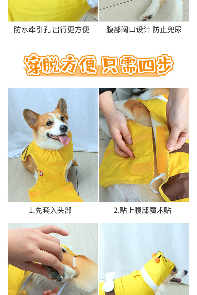 강아지 비옷, 방수옷, 네발, 소형견, 중형견, 배포코기, 레인코트, 애완용품