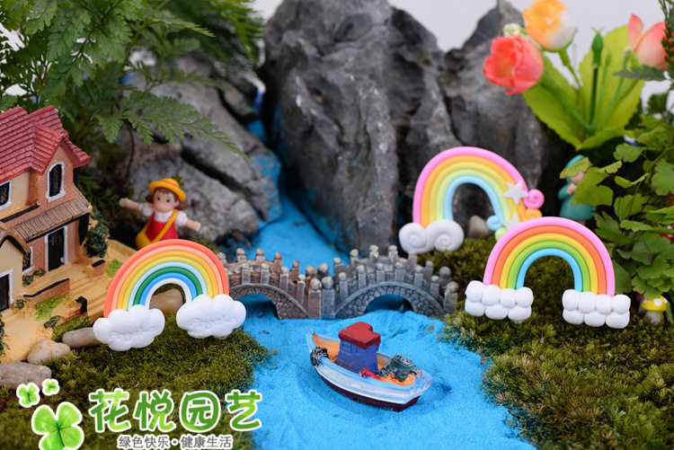 마이크로 풍경 장식품 무지개 색상 빨간색 케이크 자동차 모래 테이블 물고기 탱크 만화 장식품