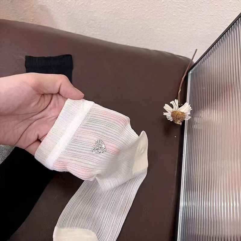 여름 가벼운 럭셔리 핫 다이아몬드 러브 아이스 실크 얇은 다용도 패션 흑백 심플 미드 튜브 여성용 양말