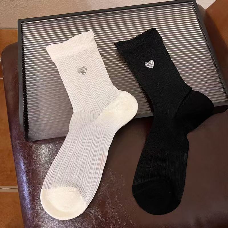 여름 가벼운 럭셔리 핫 다이아몬드 러브 아이스 실크 얇은 다용도 패션 흑백 심플 미드 튜브 여성용 양말스토어 가기