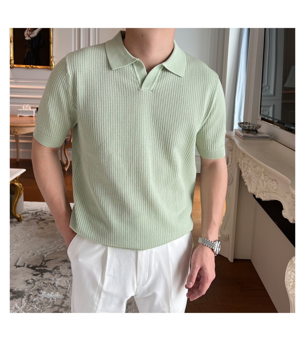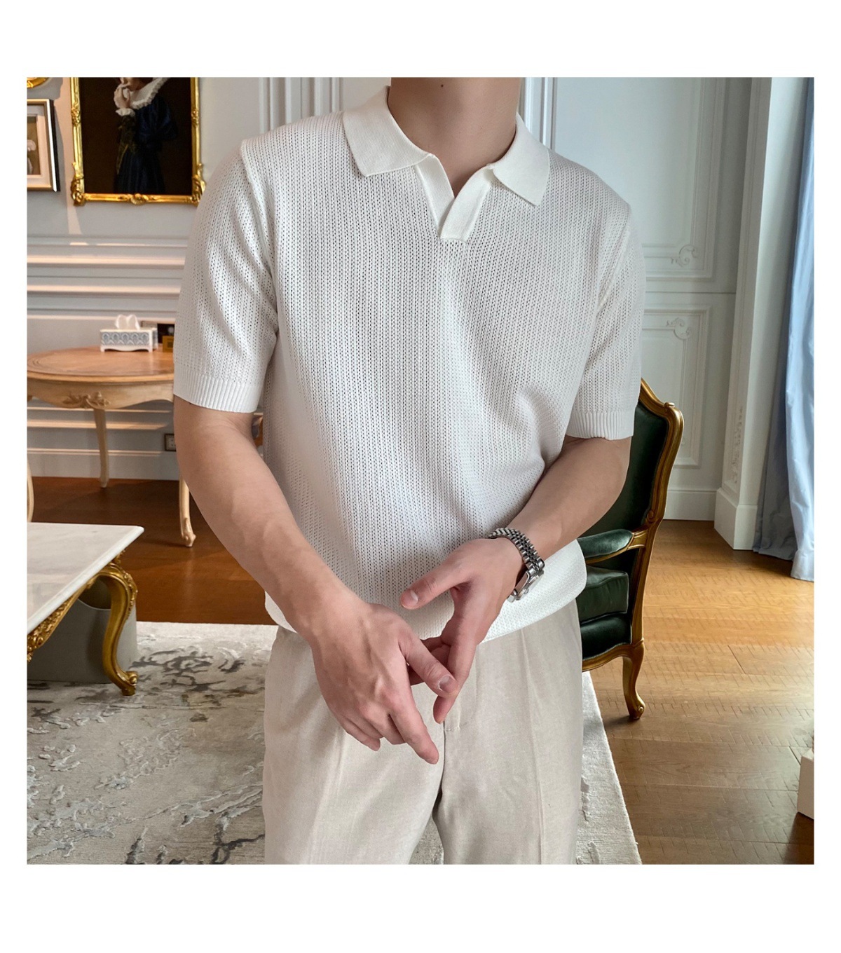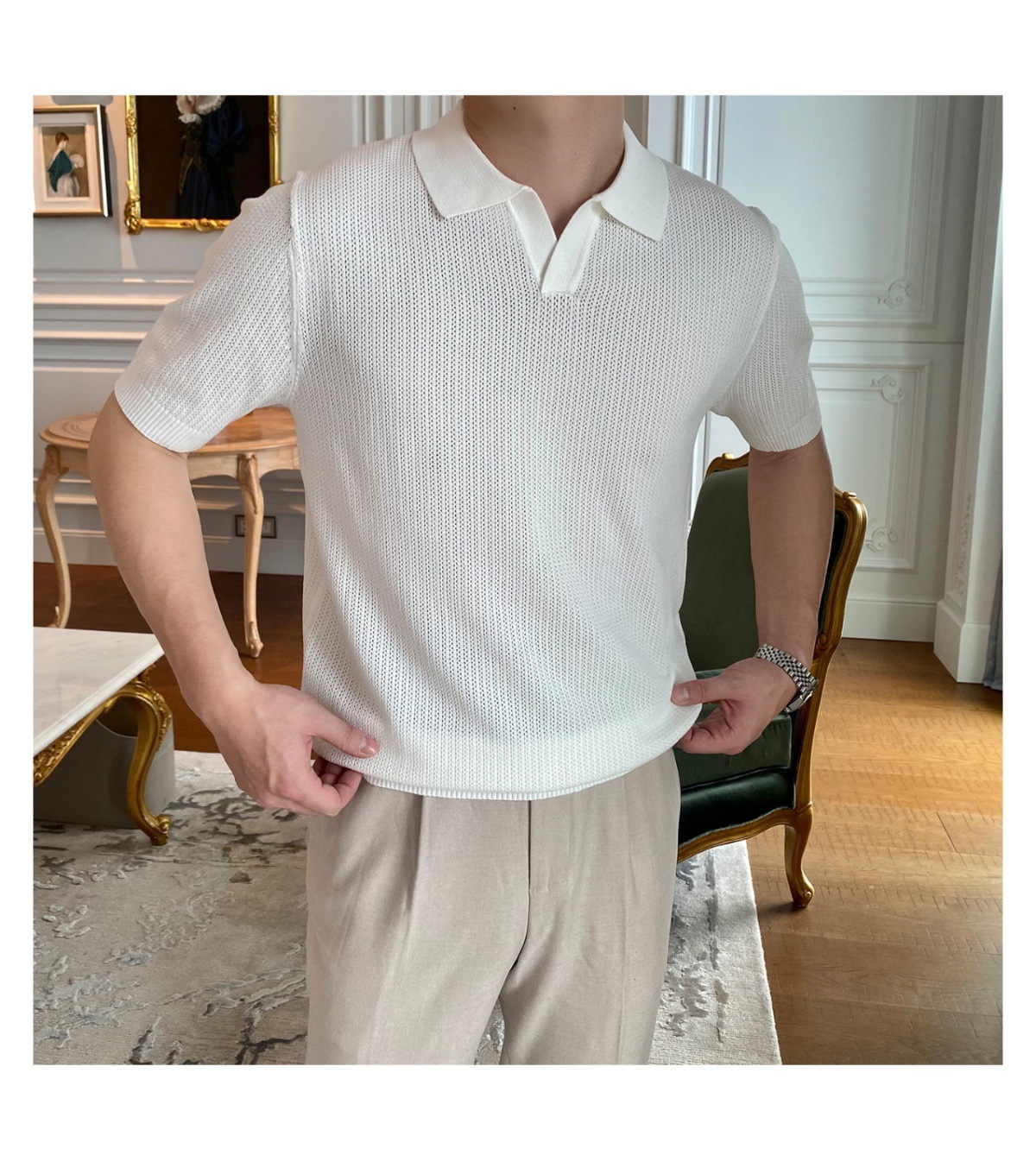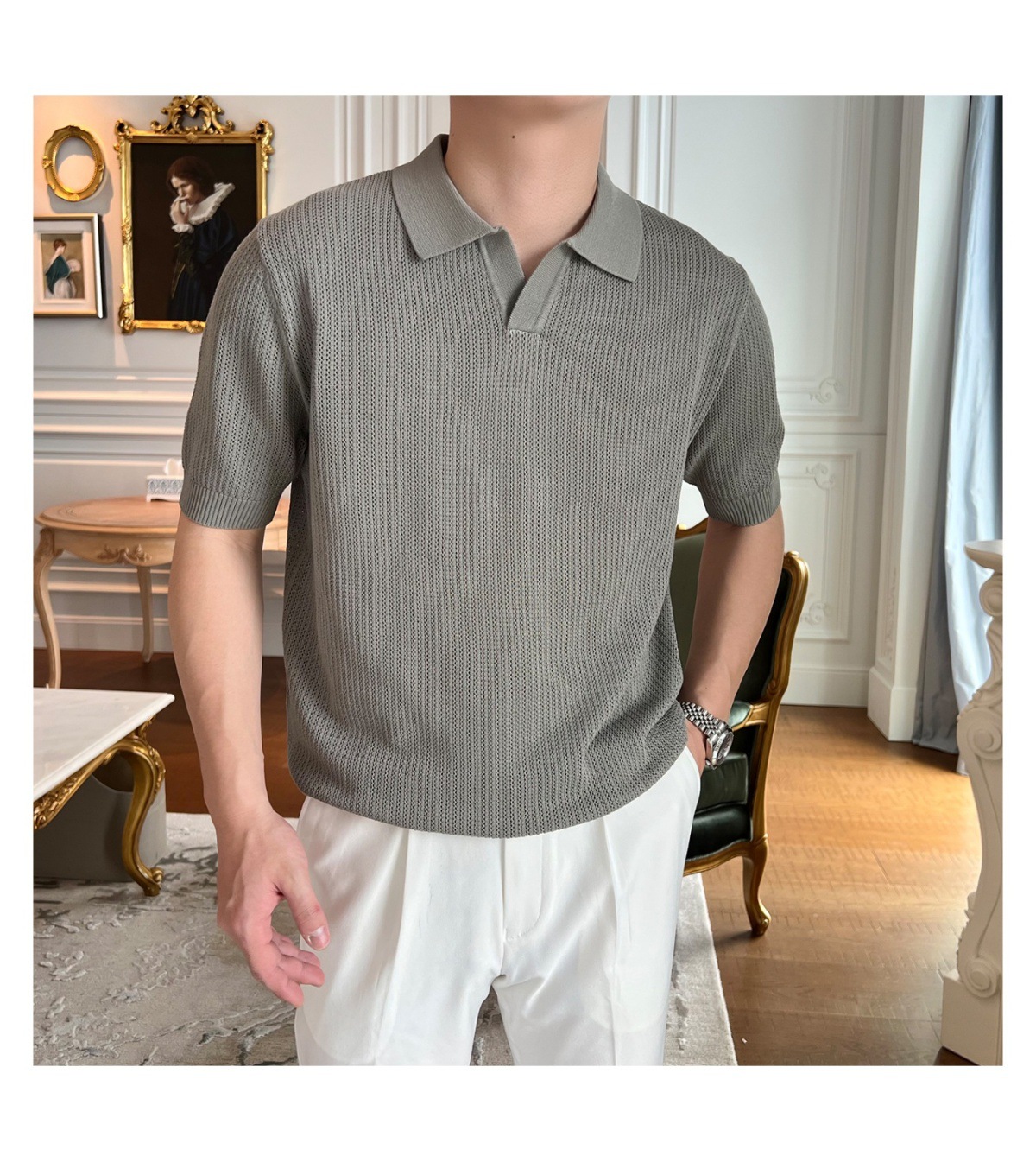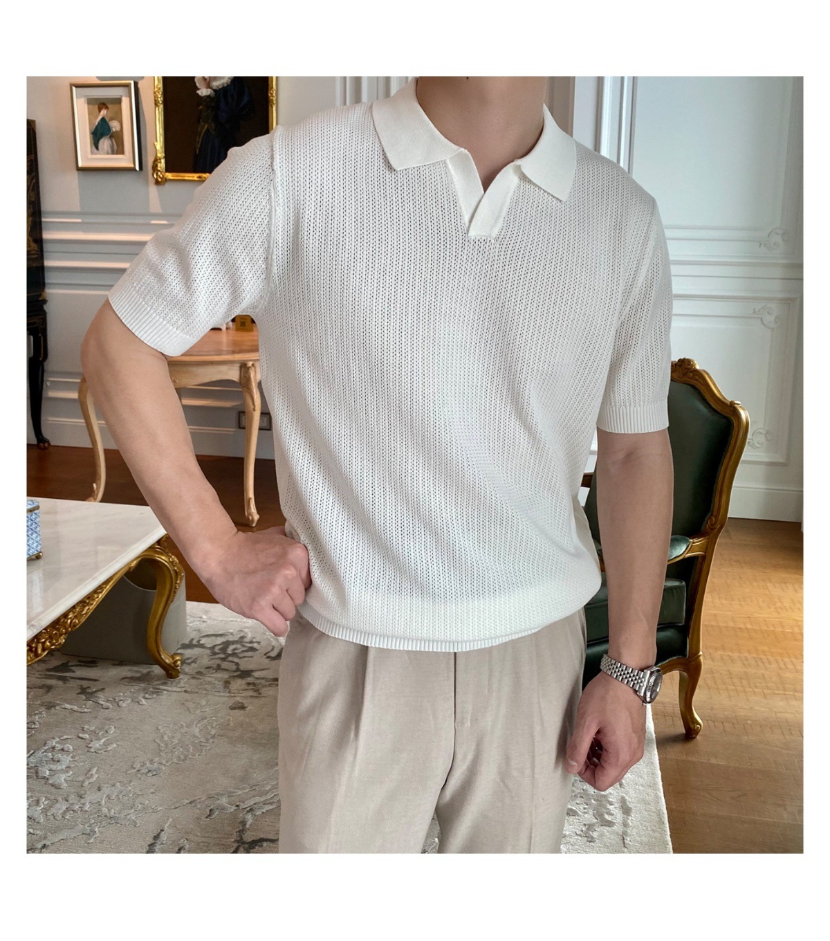 2025 신작 비즈니스 통근 심플 캐주얼 라펠 폴로 셔츠 탑 다재다능한 핫 스타일 니트 티셔츠 반팔 남성스토어 가기