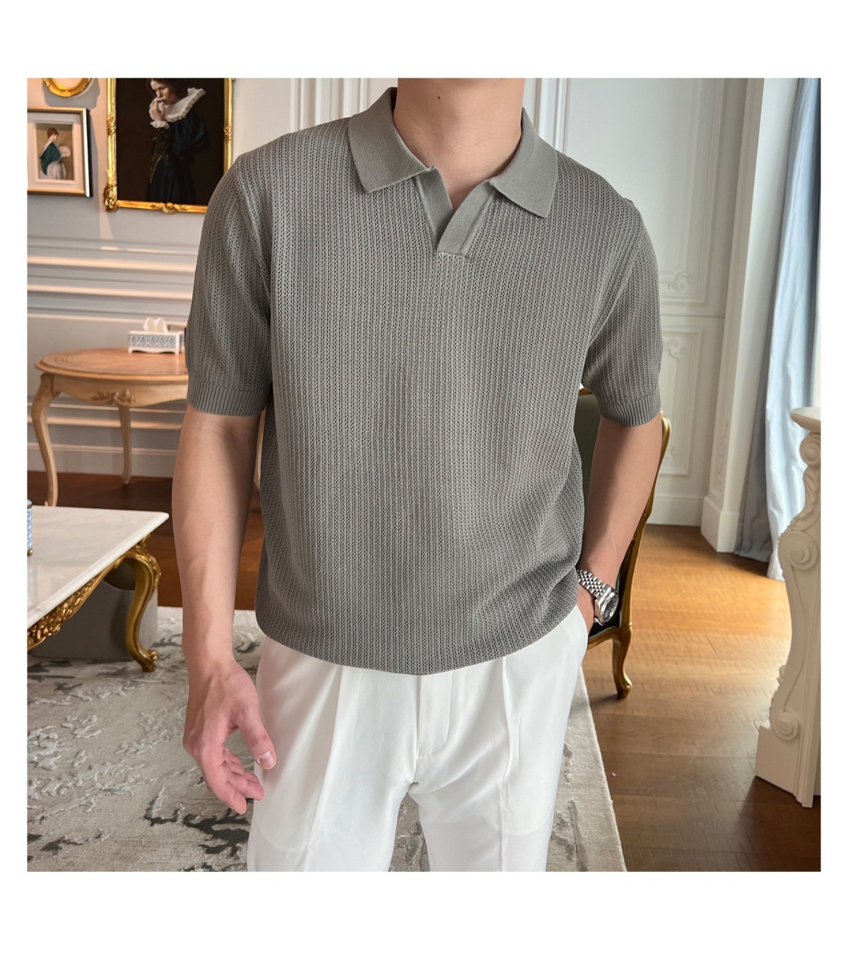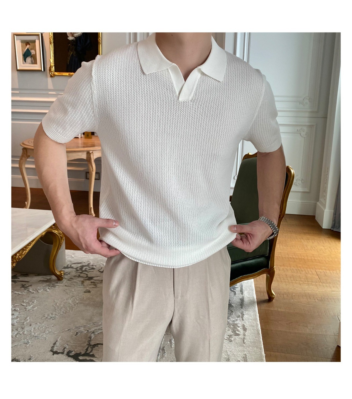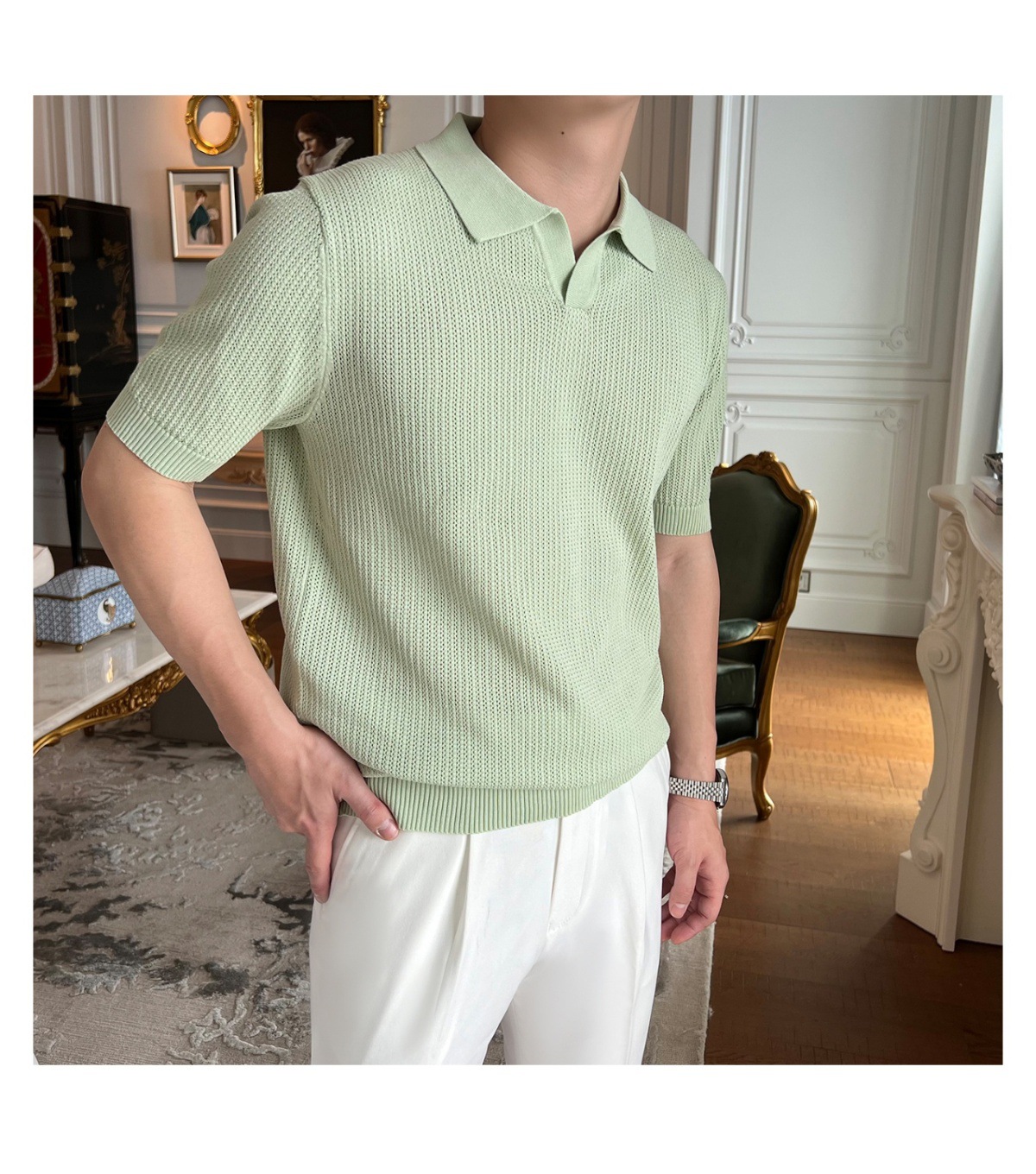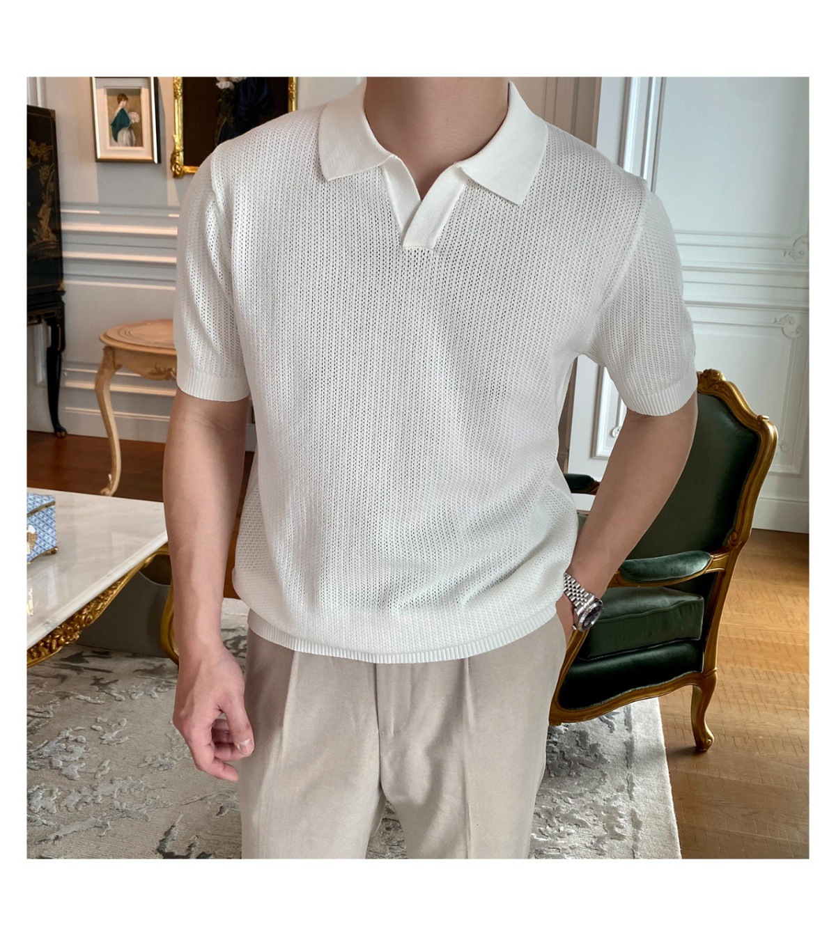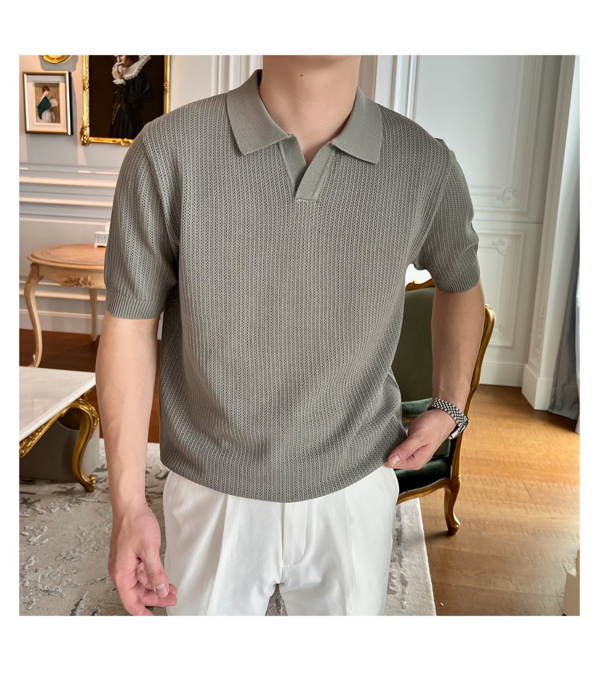 2025 신작 비즈니스 통근 심플 캐주얼 라펠 폴로 셔츠 탑 다재다능한 핫 스타일 니트 티셔츠 반팔 남성스토어 가기