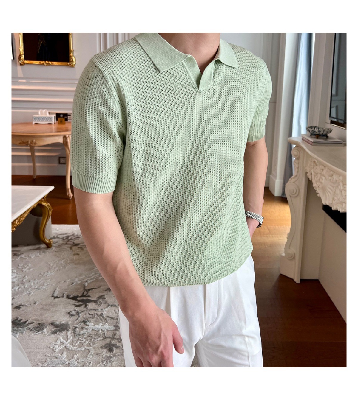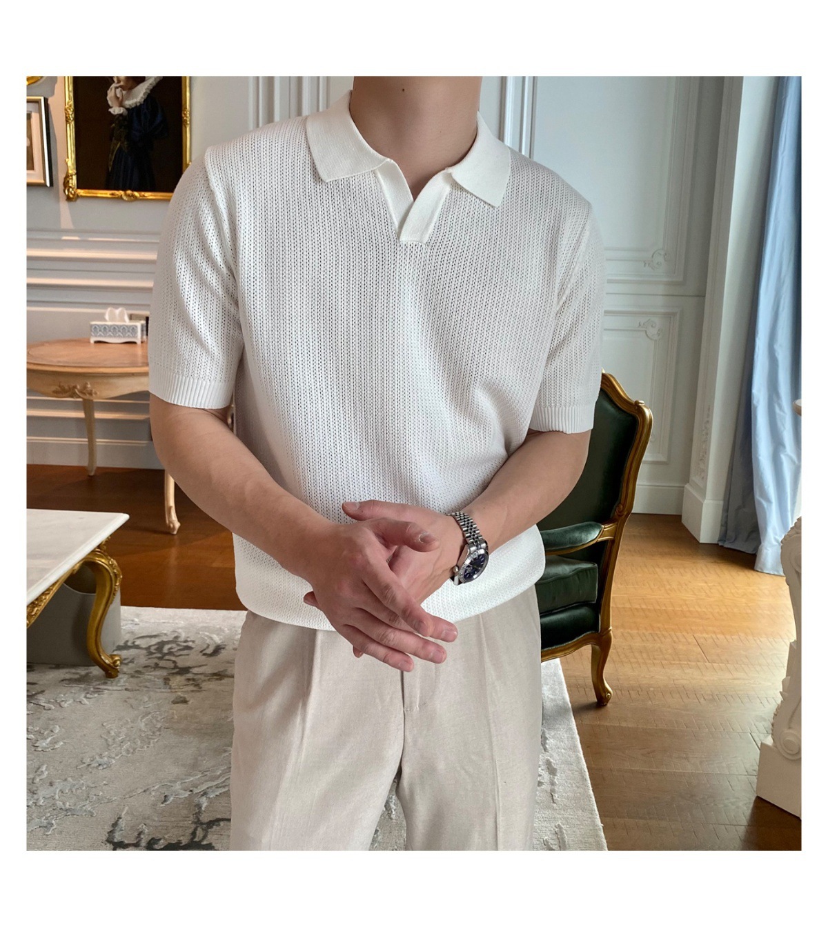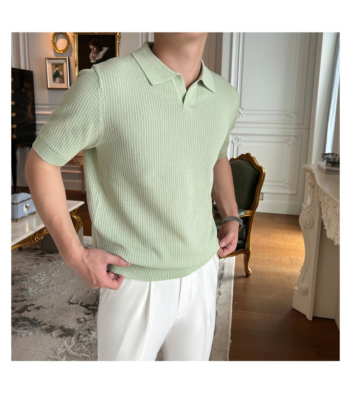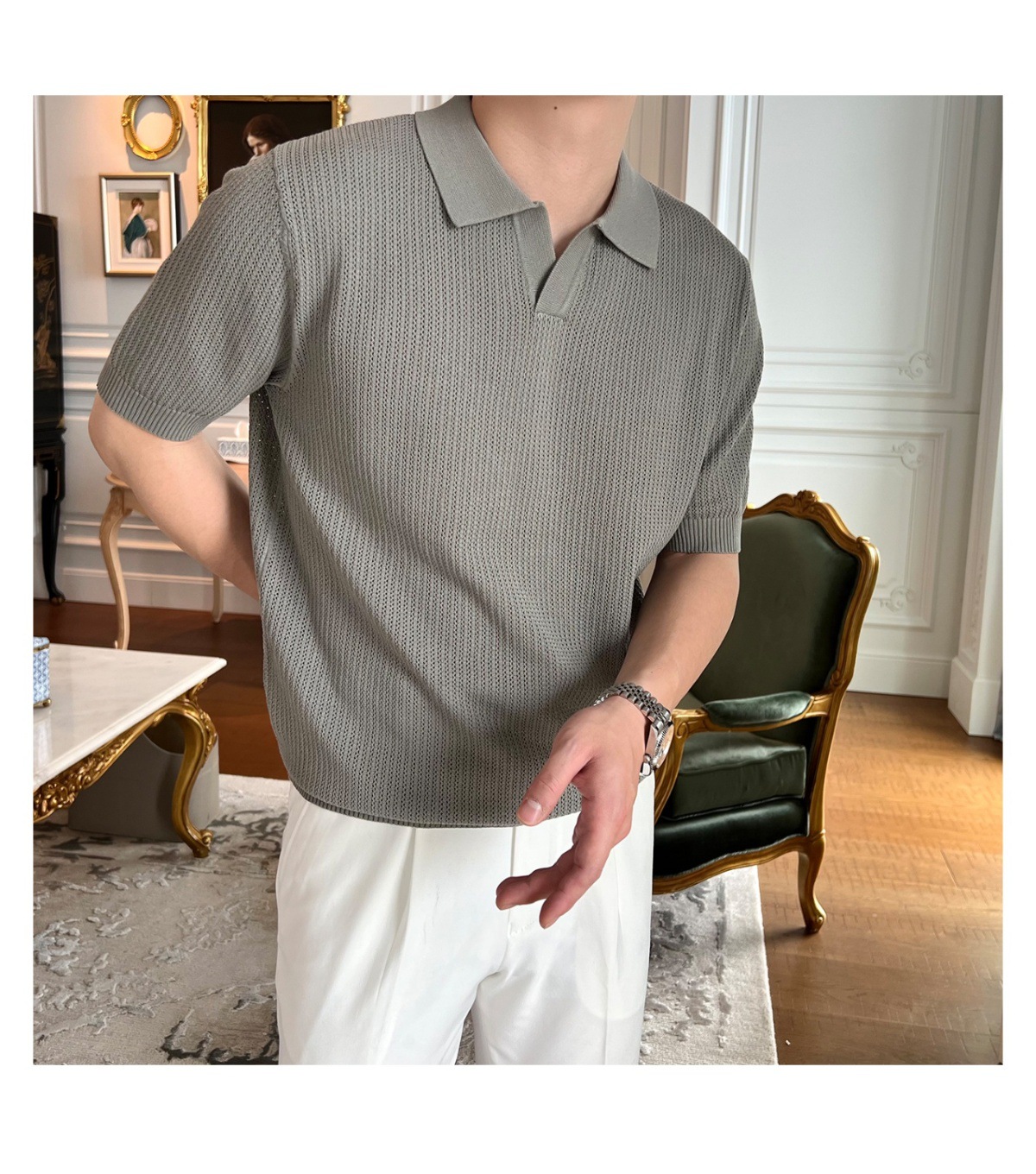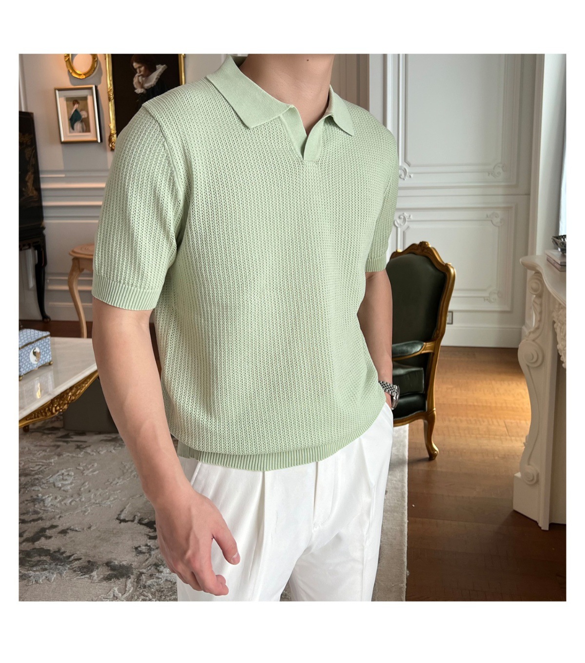 2025 신작 비즈니스 통근 심플 캐주얼 라펠 폴로 셔츠 탑 다재다능한 핫 스타일 니트 티셔츠 반팔 남성스토어 가기