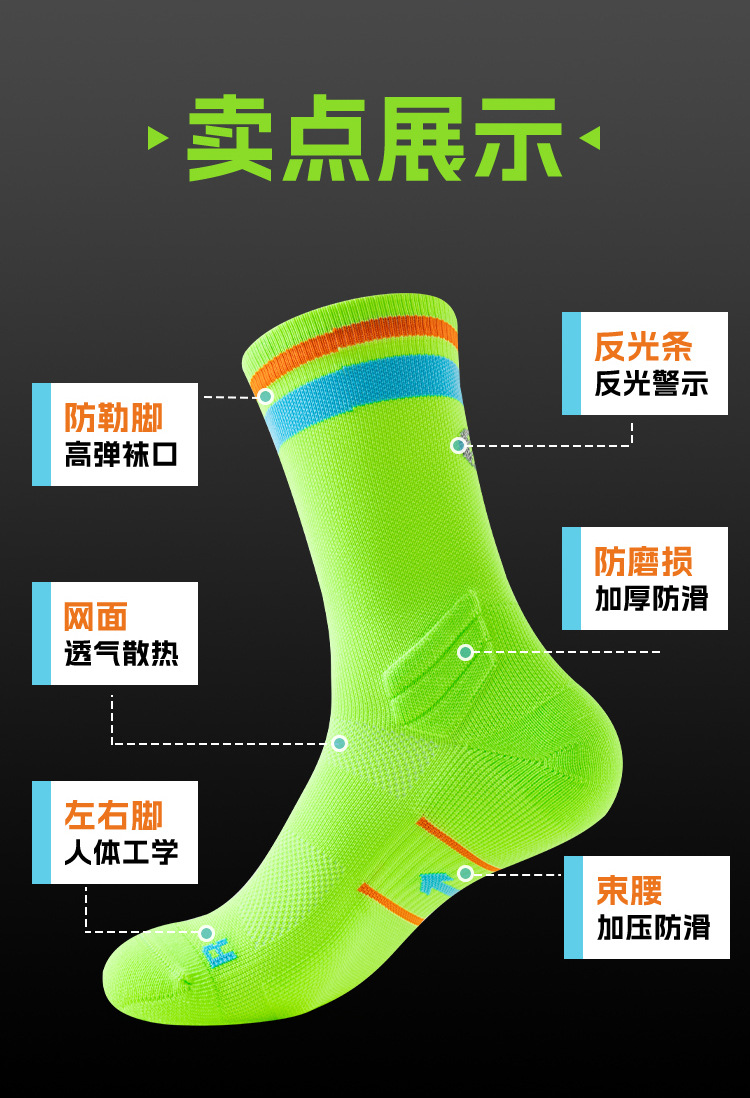마라톤 프로 달리기 양말 야외 배드민턴 승마 반사 스포츠 양말 하이킹 등반 크로스 컨트리 양말