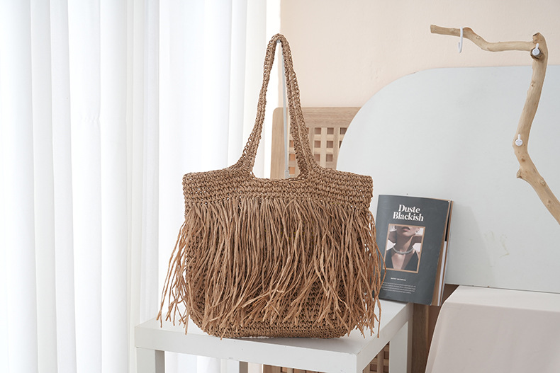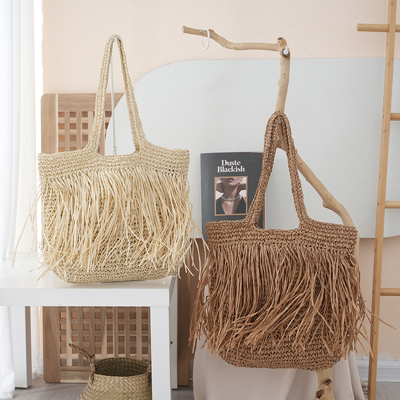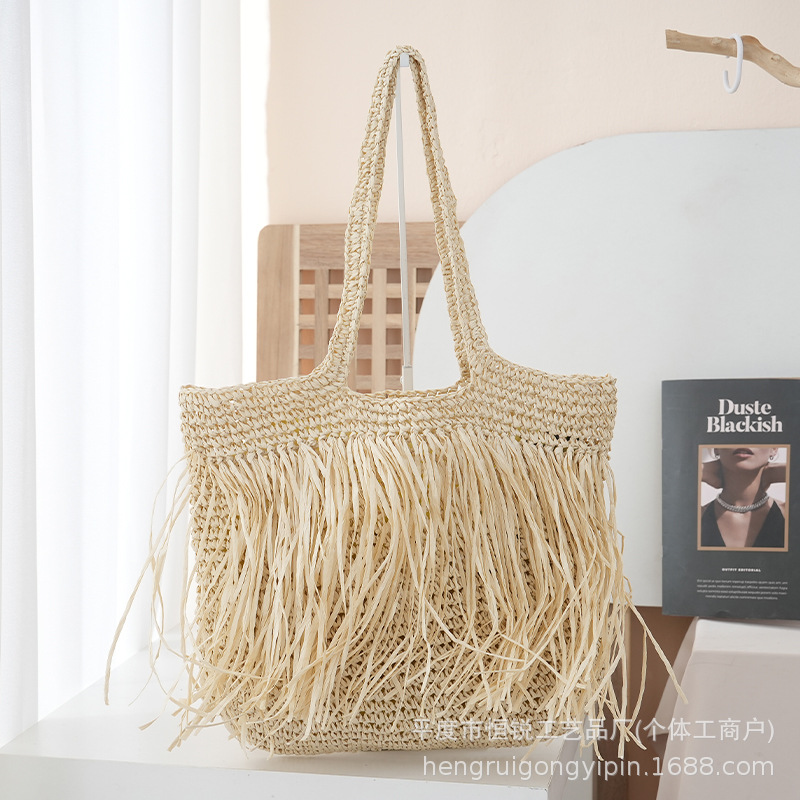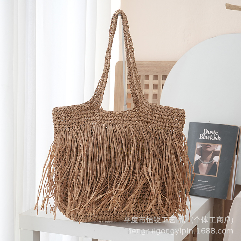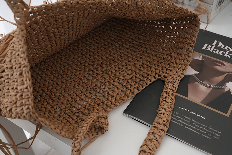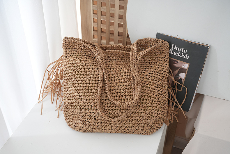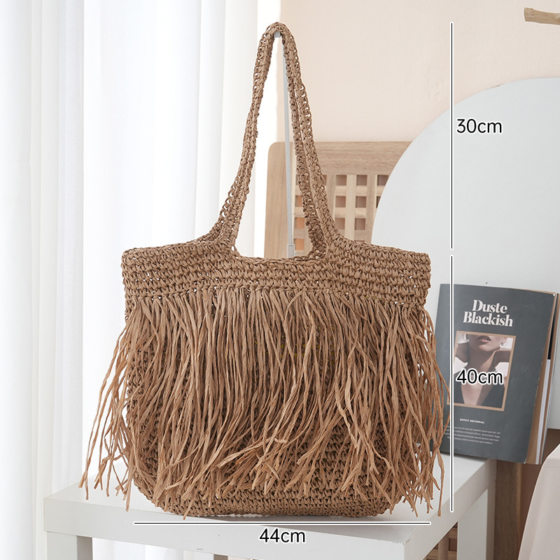 2025 새로운 싱글 사이드 술 밀짚 어깨 가방 대용량 짠 가방 여행 휴가 가방 여성 여행 가방