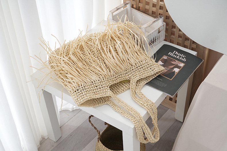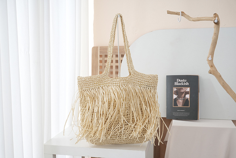 2025 새로운 싱글 사이드 술 밀짚 어깨 가방 대용량 짠 가방 여행 휴가 가방 여성 여행 가방스토어 가기