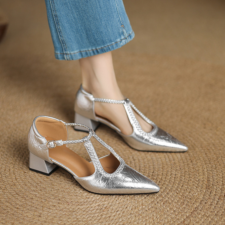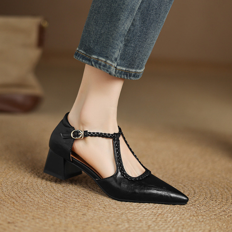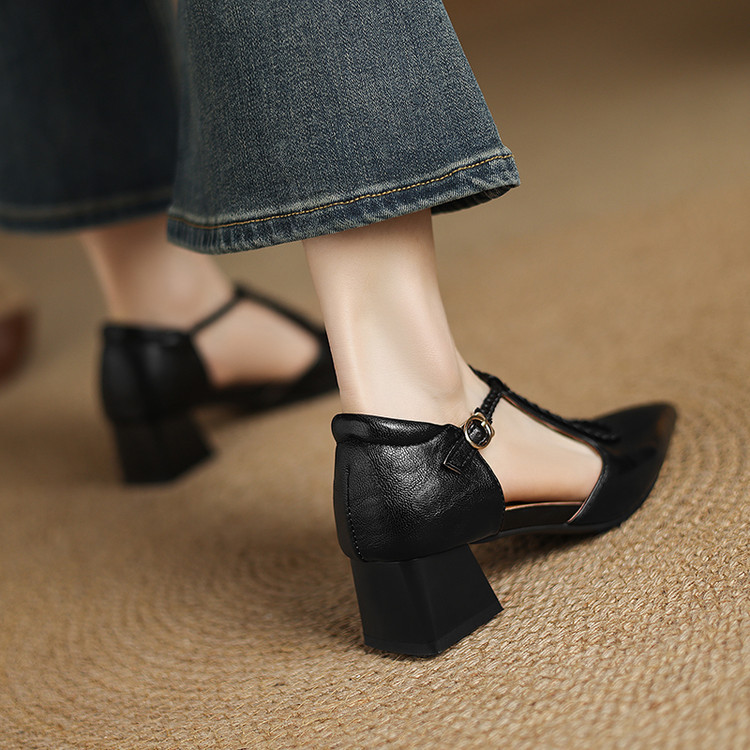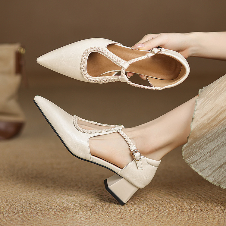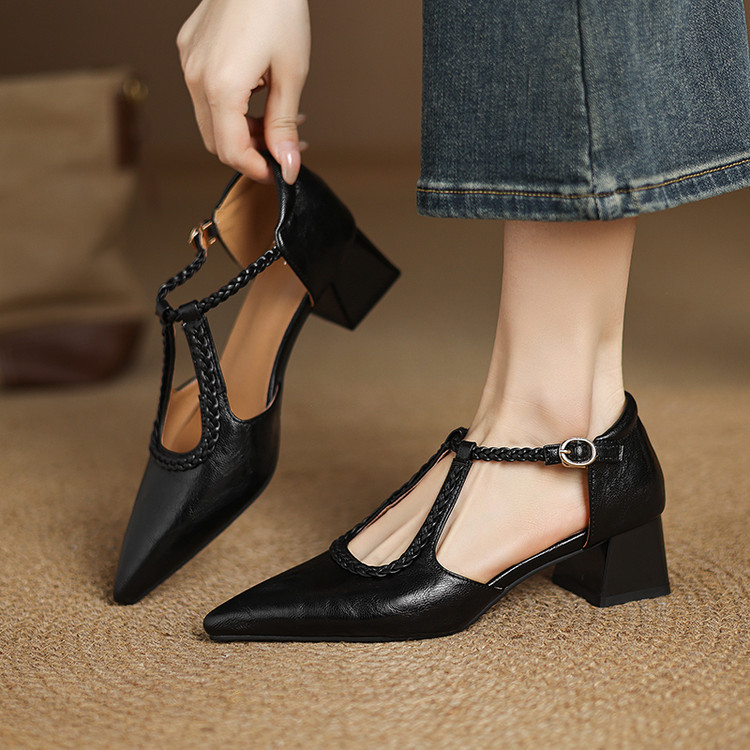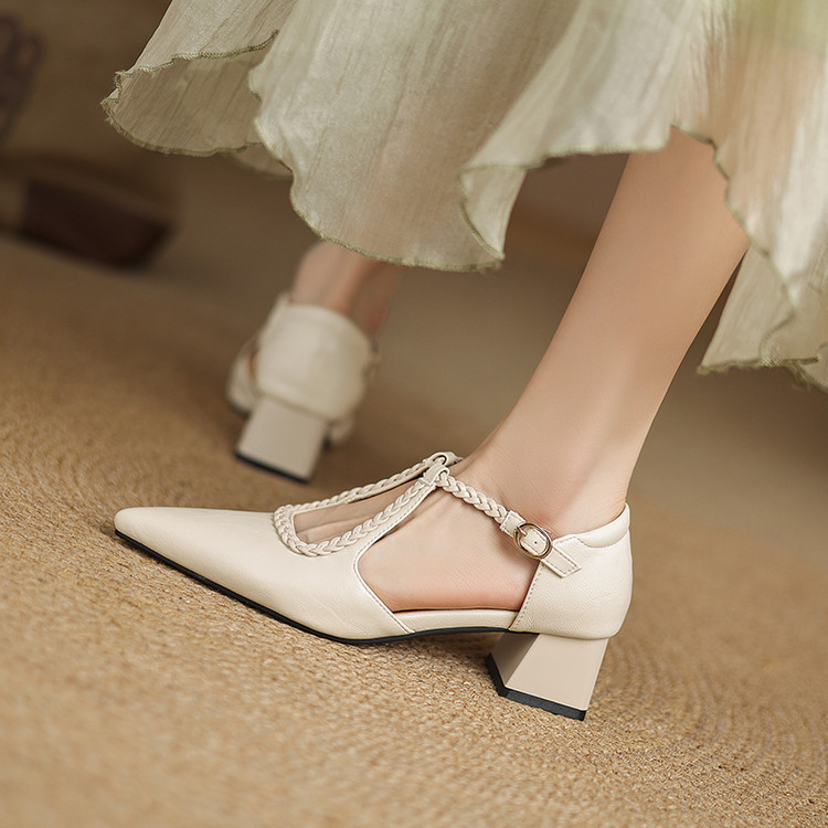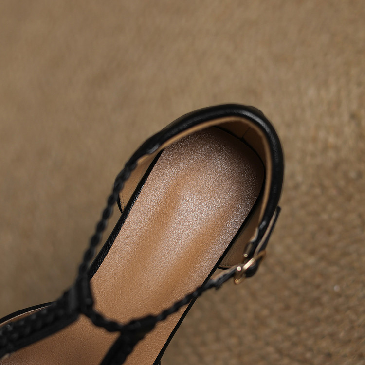 여름 여성 하이힐 샌들 캐주얼 솔리드 컬러 버클 힐드 사이즈 여성 신발 여성을위한 새로운 소프트 솔 할로우 샌들