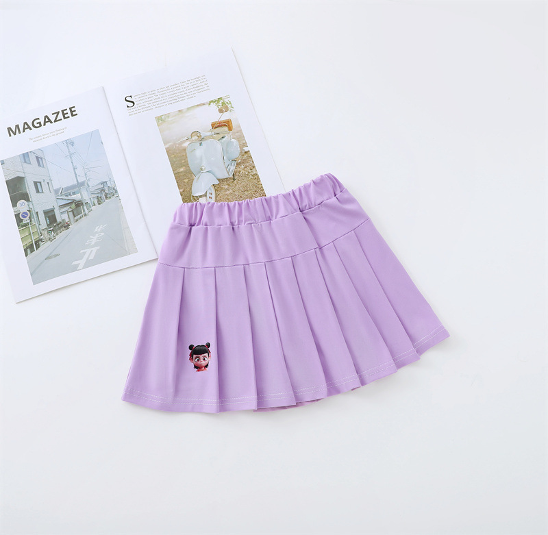 여아 프린트 Nezha 스커트 플리츠 스커트 한국식 신작 아동용 다용도 대학 스타일 짧은 스커트 가짜 투피스 스커트스토어 가기