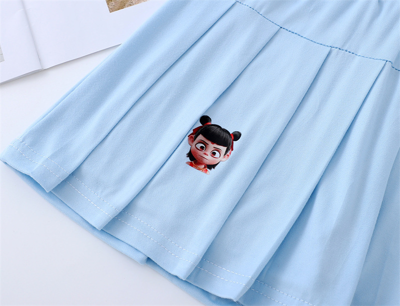 여아 프린트 Nezha 스커트 플리츠 스커트 한국식 신작 아동용 다용도 대학 스타일 짧은 스커트 가짜 투피스 스커트