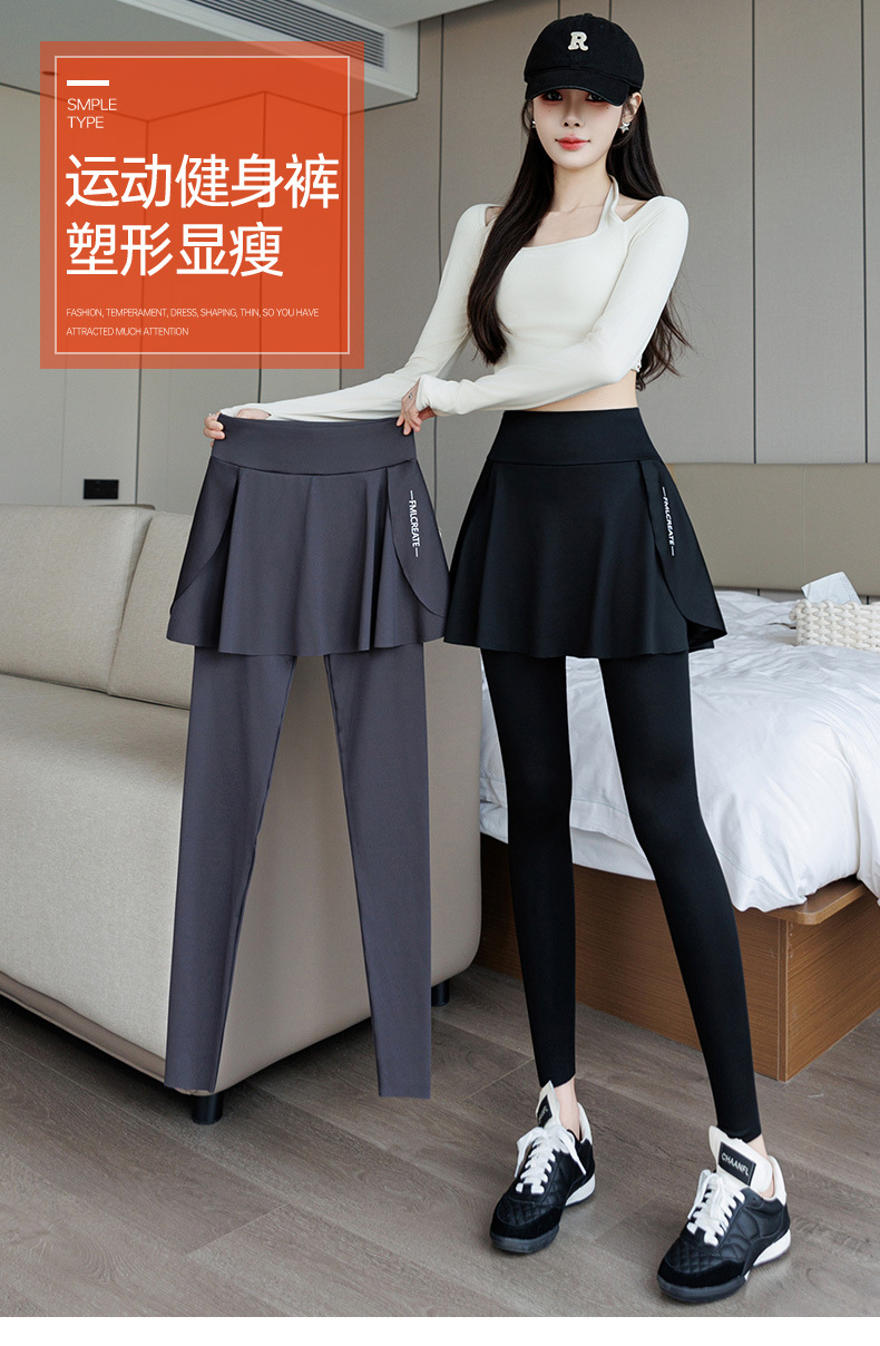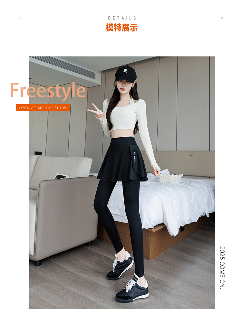 플러스 사이즈 통통녀 가짜 2 피스 상어 바지 방귀 커튼 여성의 2025 새로운 높은 허리 얇은 바비 피트니스 레깅스스토어 가기
