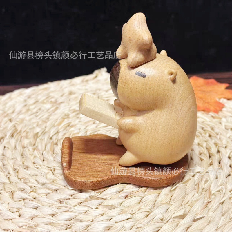 너도밤나무 카피바라 변기 나무 조각 손잡이 남자 친구와 집 친구를 위한 창의적인 집 선물 데스크탑 장식품스토어 가기