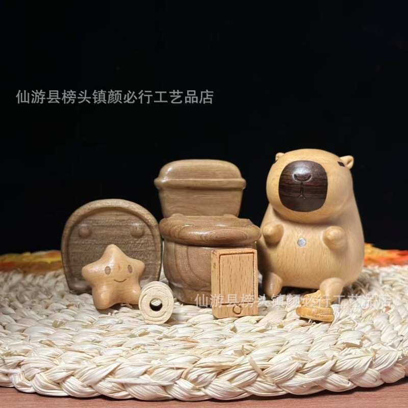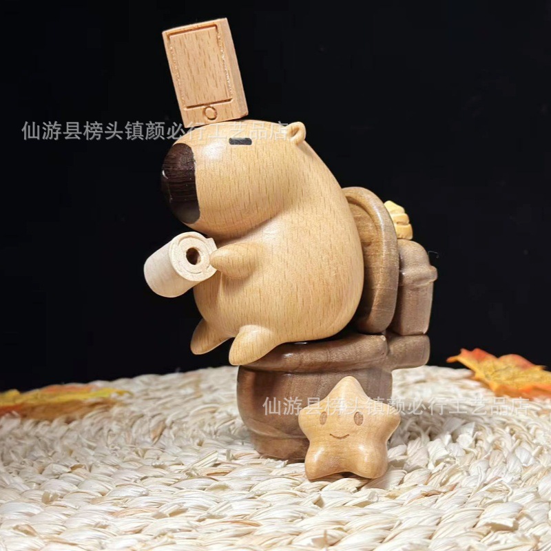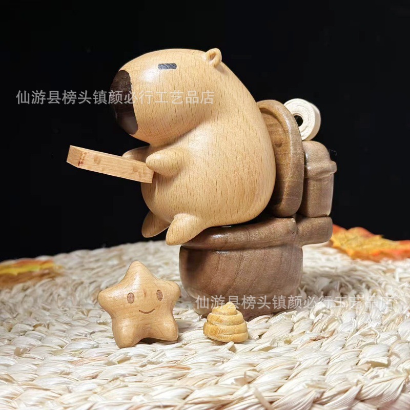 너도밤나무 카피바라 변기 나무 조각 손잡이 남자 친구와 집 친구를 위한 창의적인 집 선물 데스크탑 장식품
