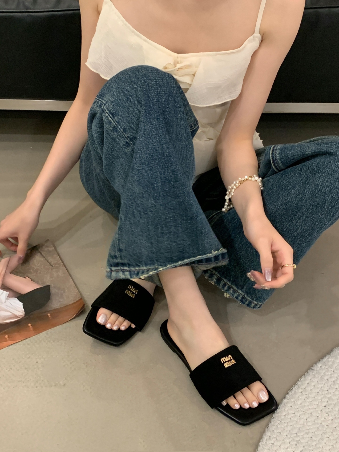 여성을 위한 한국식 스퀘어 토 플립플롭, 봄 여름 신상 플랫 로마 샌들, 캐주얼하고 활용도가 높은 비치 슬리퍼스토어 가기