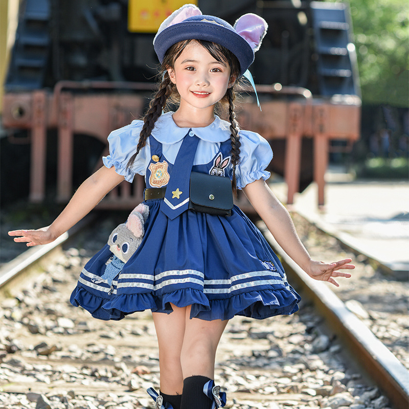 토끼 경찰관 아동복 소녀 공주 드레스 여름 스타일 소녀 여름 생일 드레스 로리타 스커트