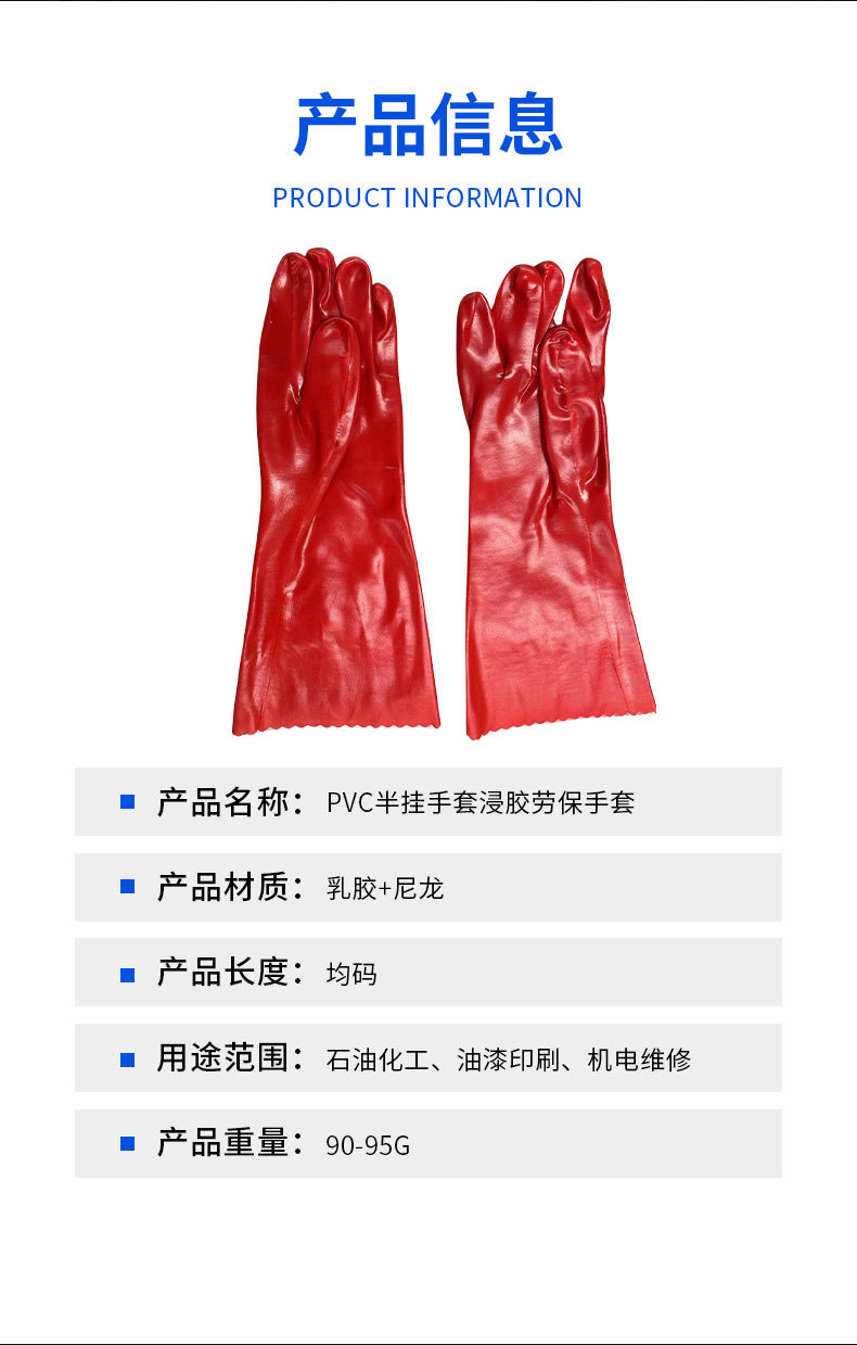 PVC 반장갑, 고무 코팅, 노동 보호, 빨간색, 미끄럼 방지, 어업, 양식, 가사, 청소, 제조업체 도매
