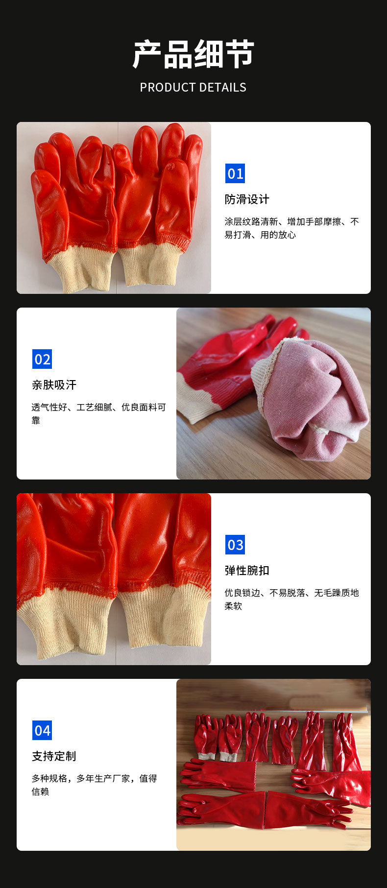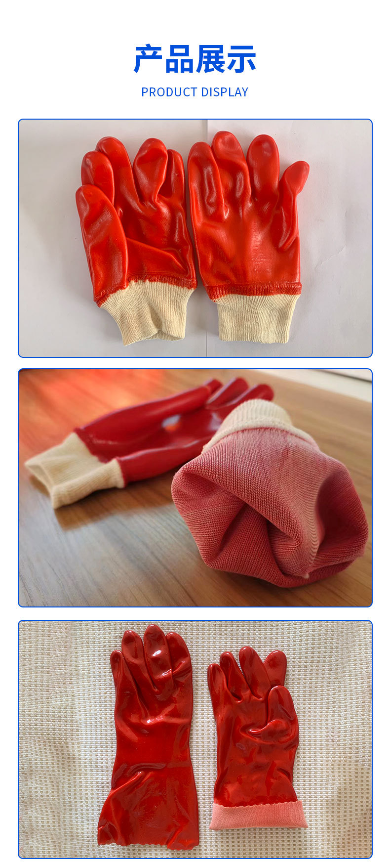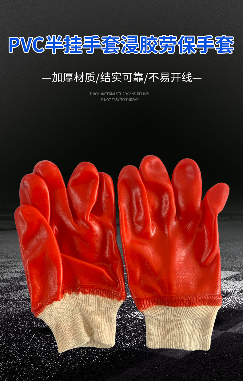 PVC 반장갑, 고무 코팅, 노동 보호, 빨간색, 미끄럼 방지, 어업, 양식, 가사, 청소, 제조업체 도매스토어 가기