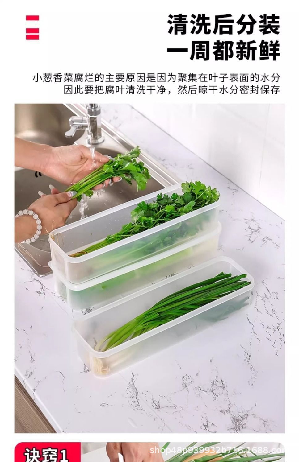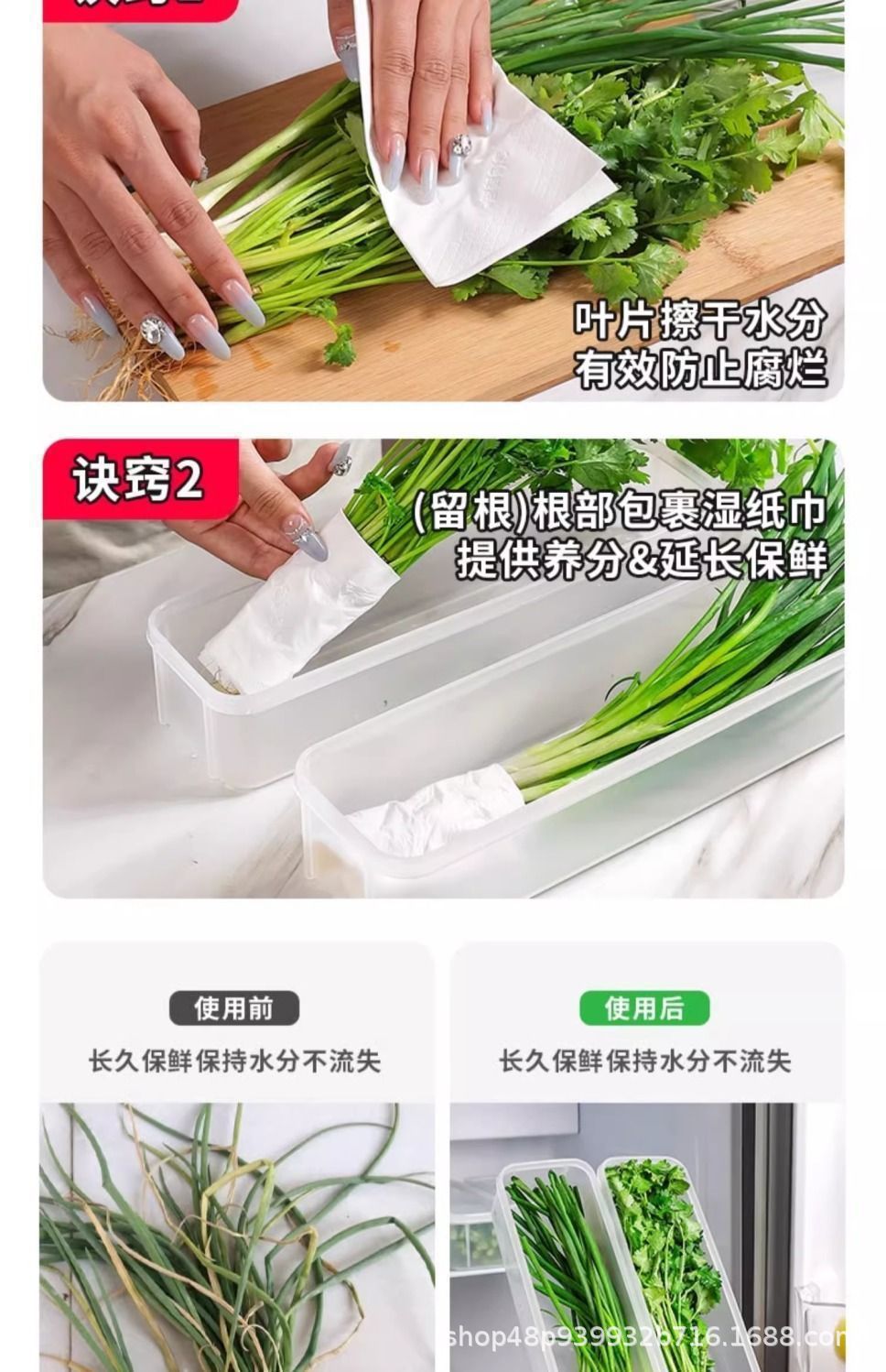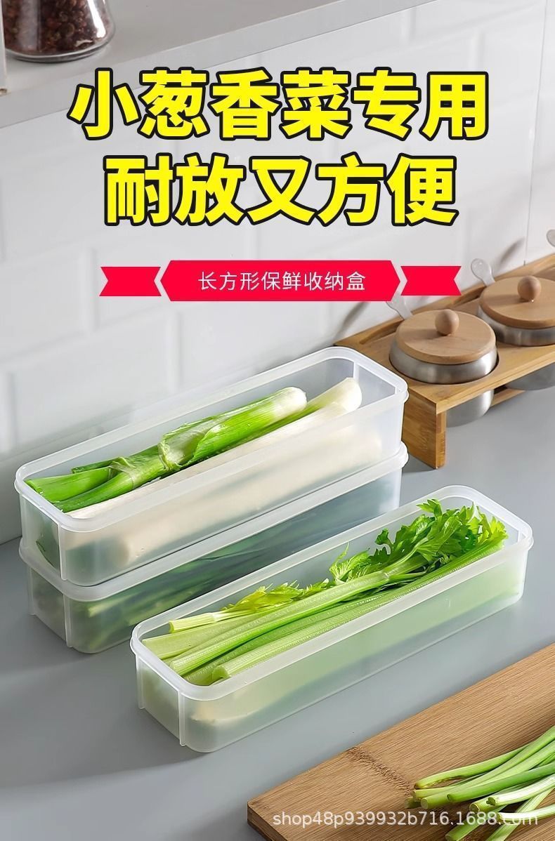고수풀과 파 보관 상자, 크고 긴 면, 직사각형 대용량 식품 밀봉 상자
