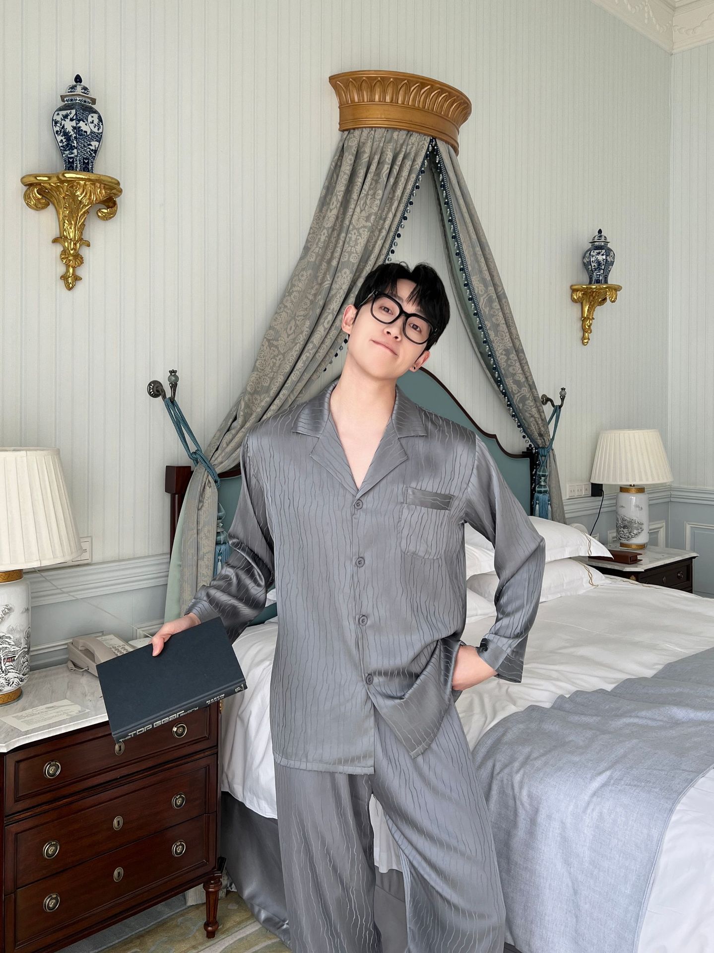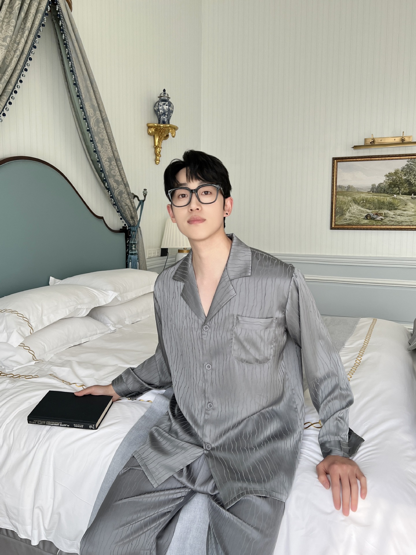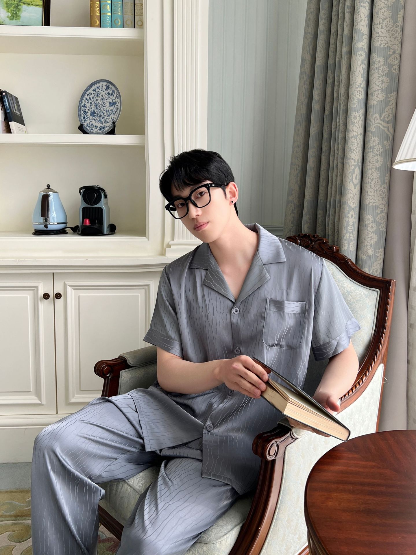 2025 새로운 자카드 잠옷 남자 여름 얼음 실크 반팔 가정 의류 여름 얇은 실크 카디건 3 피스 세트