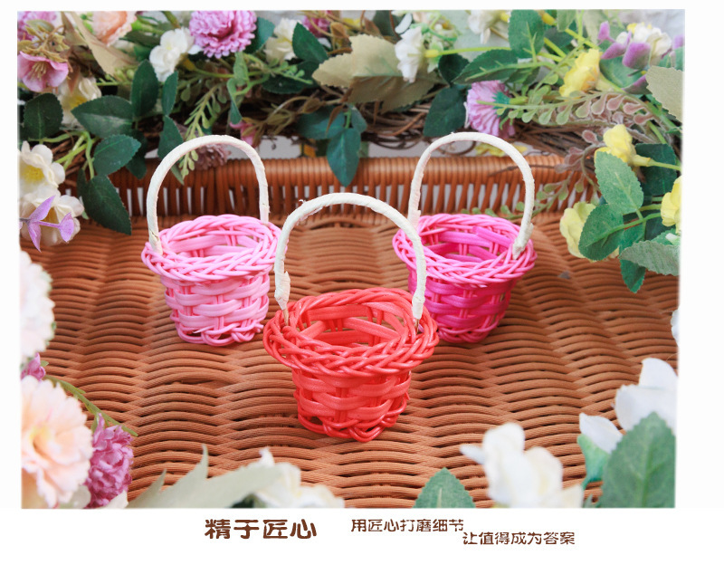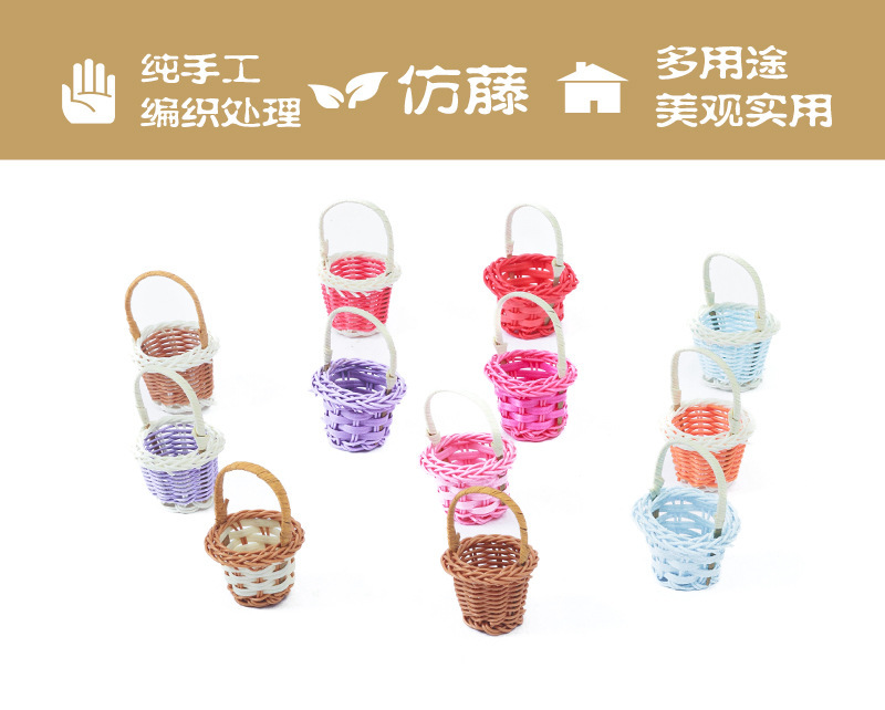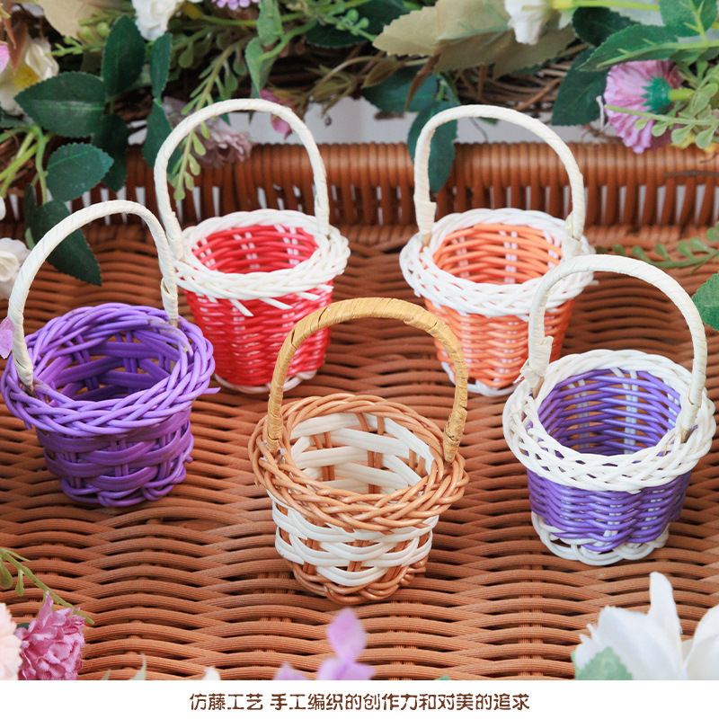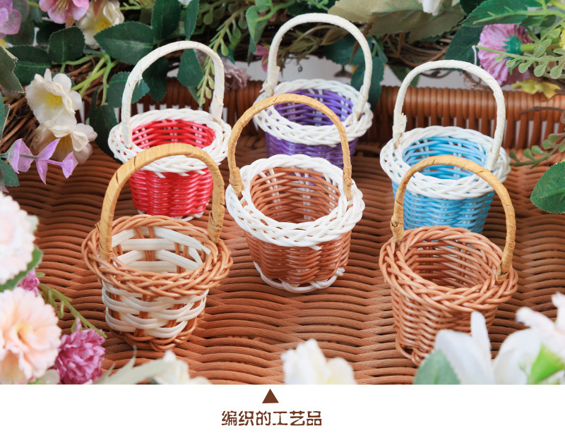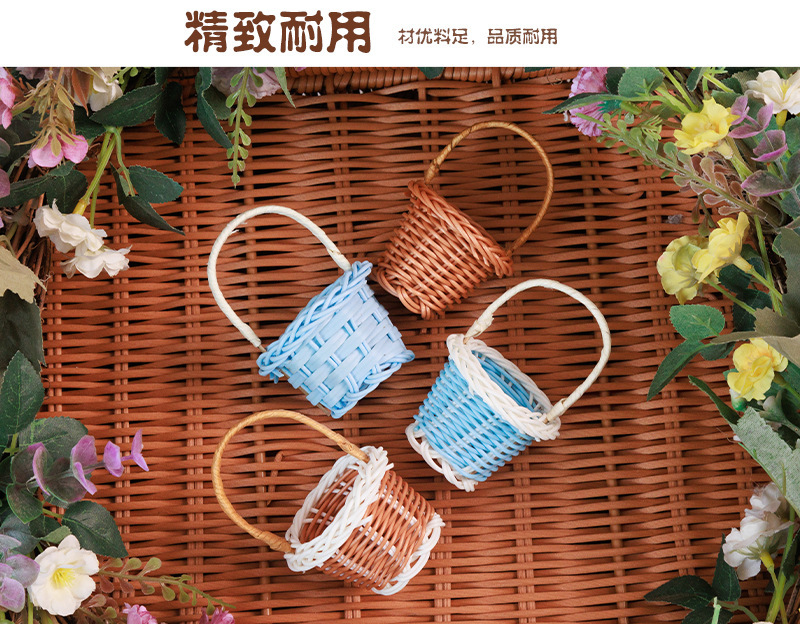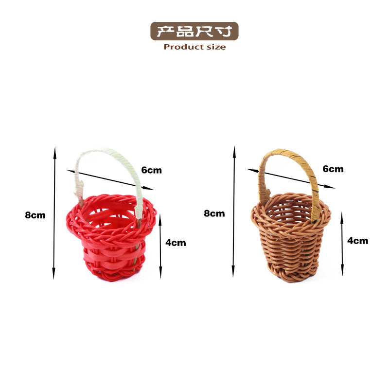 인형의 집 미니 등나무 손 바구니 놀이 집 장난감 장면 장식품 손으로 짠 사진 소품 꽃 바구니