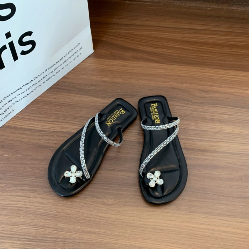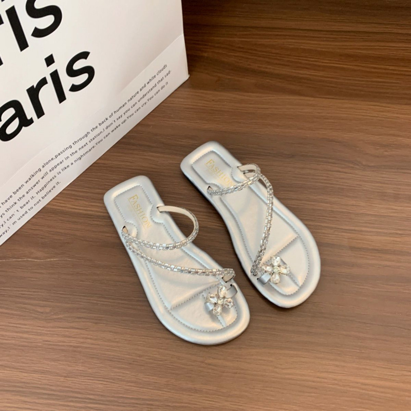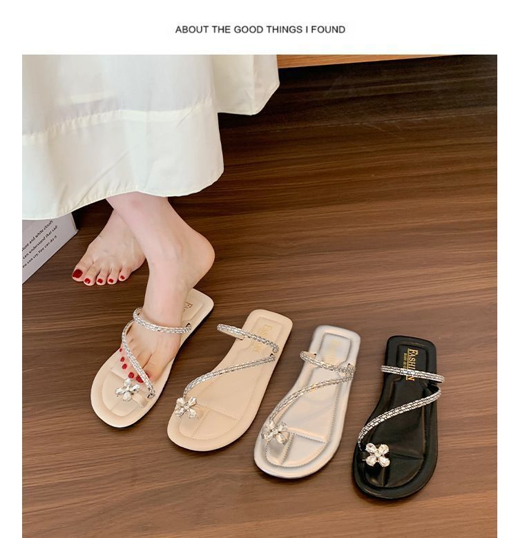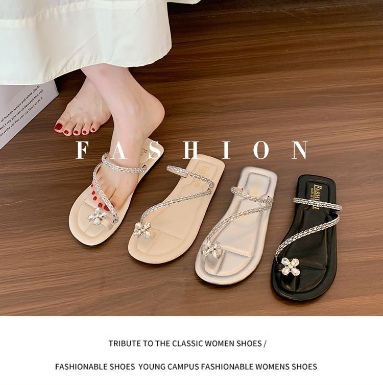플랫 플래시 다이아몬드 발가락 슬리퍼 여성 여름 외부 착용 2024 새로운 유행 우아한 해변 부드러운 바닥 슬리퍼스토어 가기