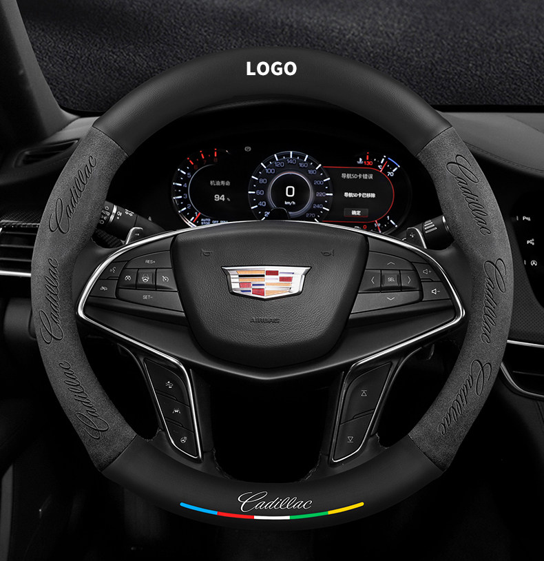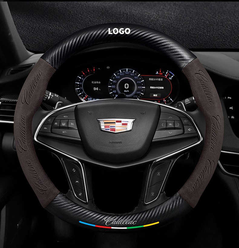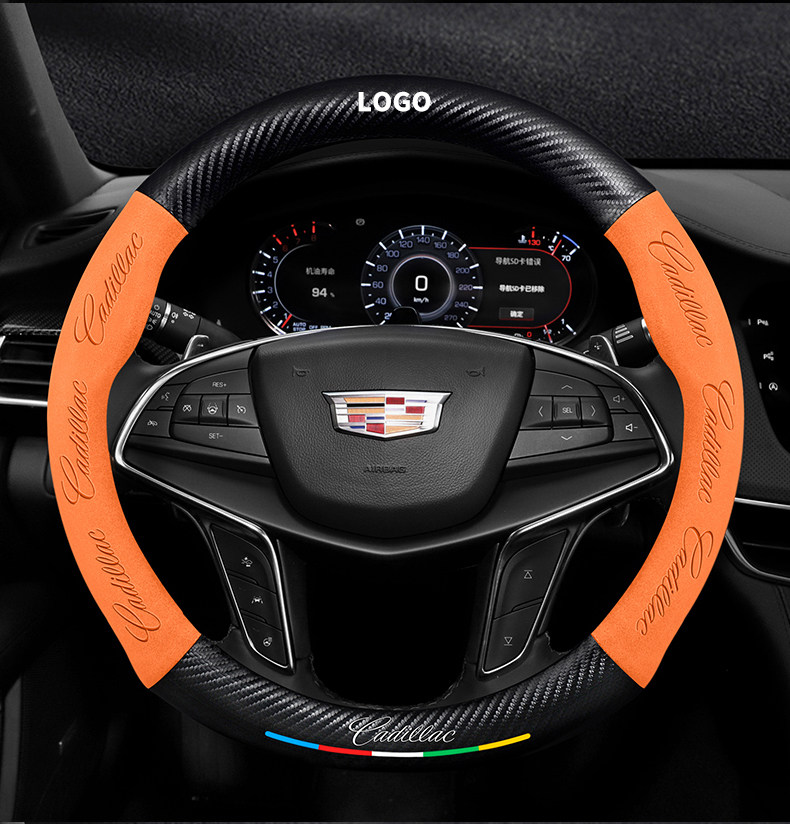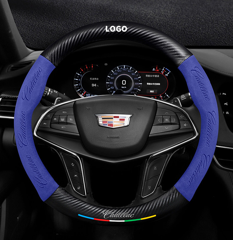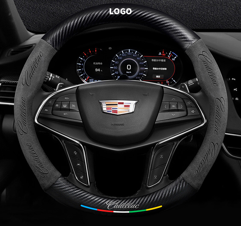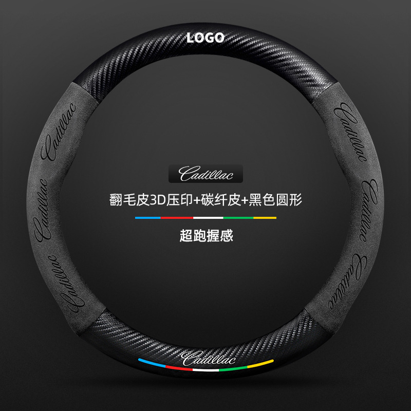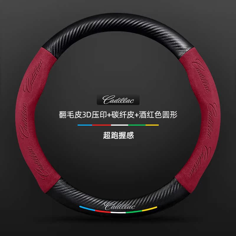 캐딜락 스티어링 휠 커버에 적합 SRX/CT5/XTS/ATSL 스웨이드 탄소 섬유 가죽 자동차 핸들 커버