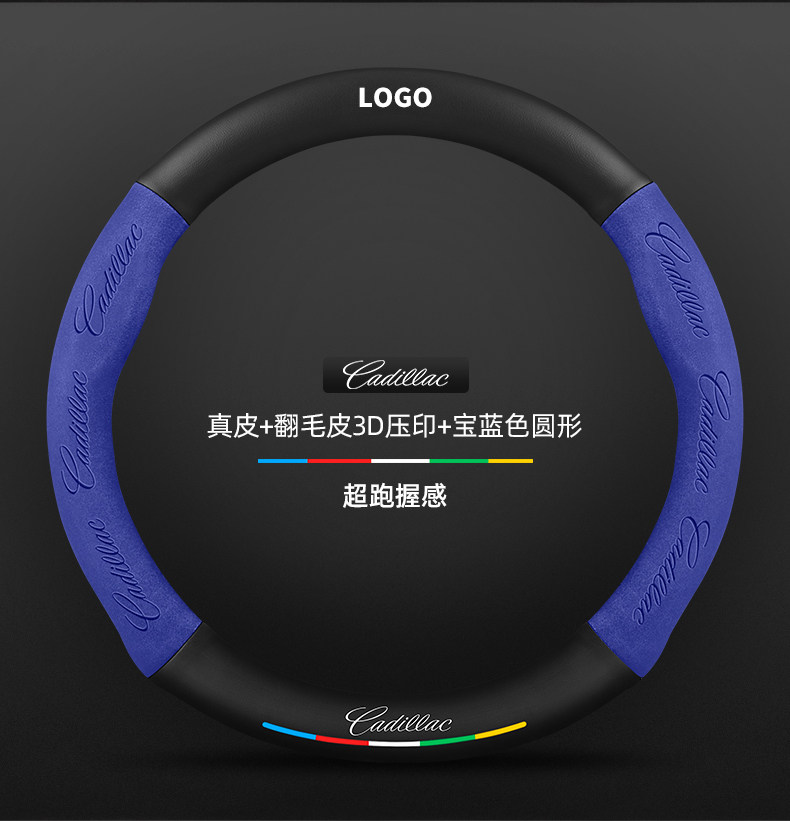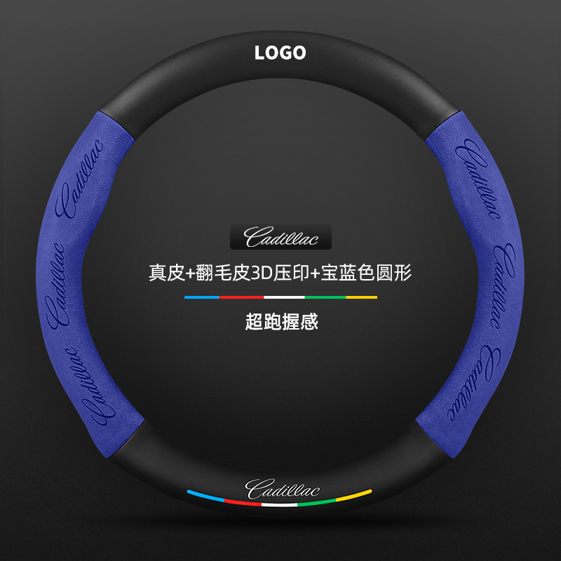 • 천연 가죽 스웨이드 3D 양각 로얄 블루 라운드 캐딜락 로고