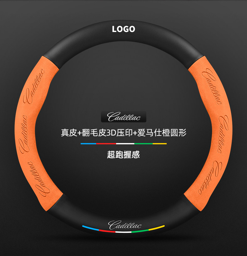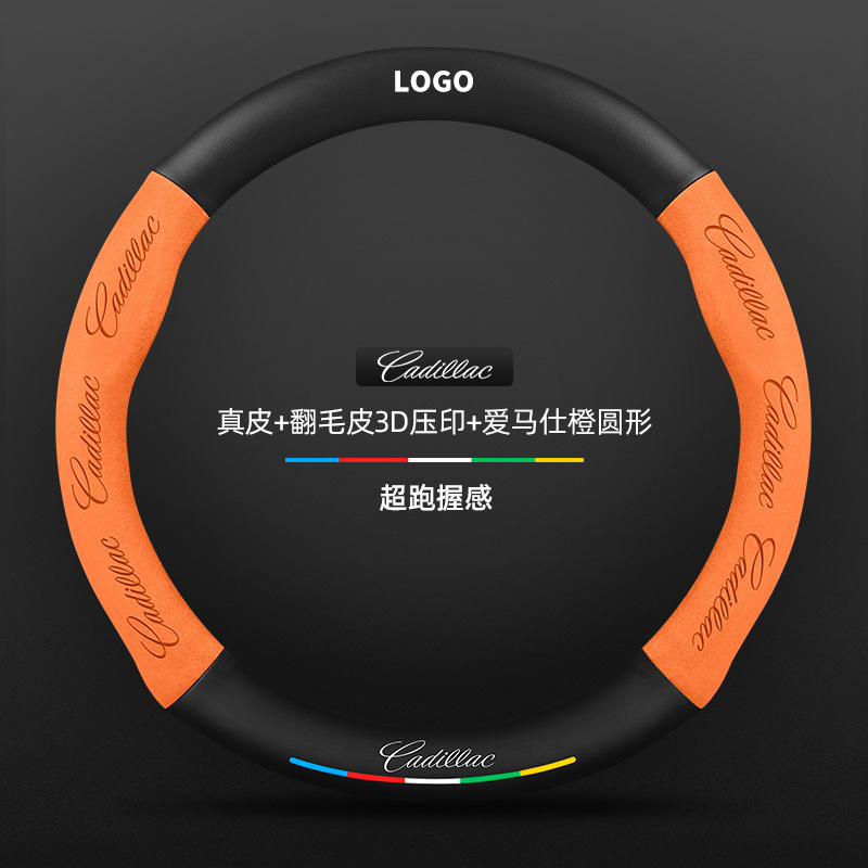 • 천연가죽 스웨이드 3D 엠보싱 헤르메스 오렌지 라운드 캐딜락 로고