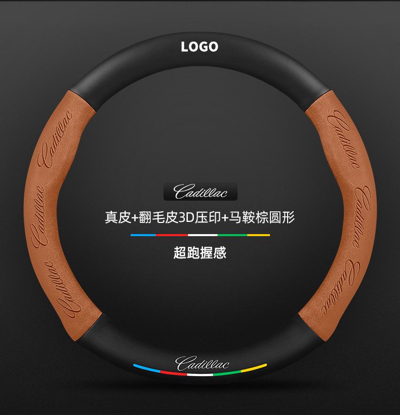• 천연가죽 스웨이드 3D 엠보싱 모카 브라운 라운드 캐딜락 로고