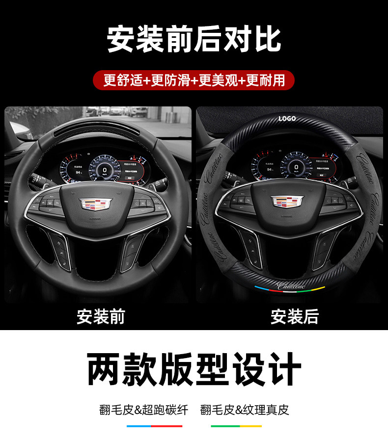 캐딜락 스티어링 휠 커버에 적합 SRX/CT5/XTS/ATSL 스웨이드 탄소 섬유 가죽 자동차 핸들 커버스토어 가기