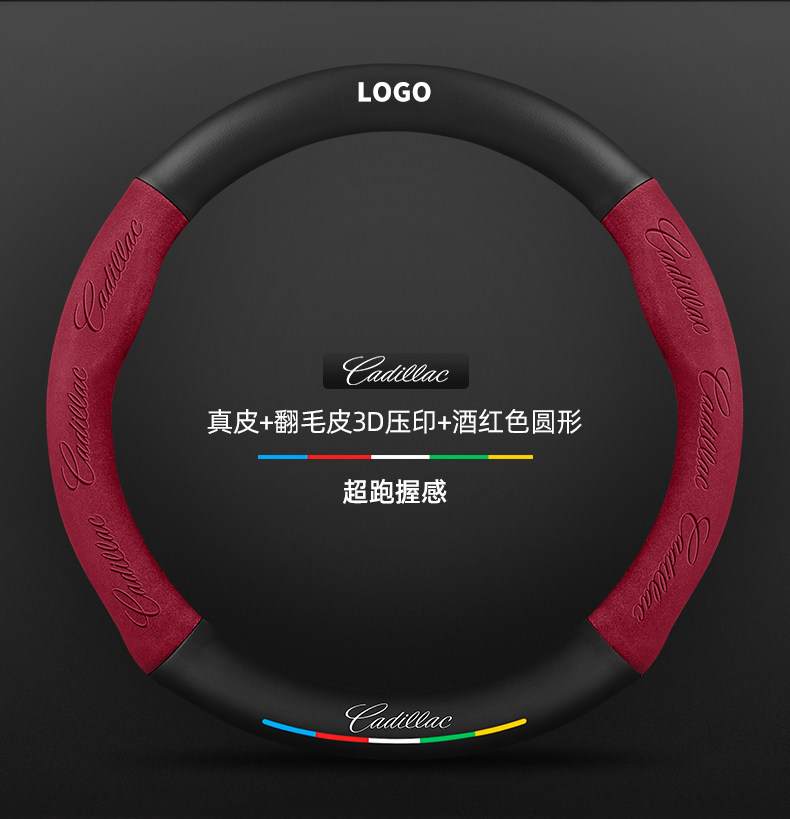 • 천연 가죽 스웨이드 3D 양각 버건디 라운드 캐딜락 로고