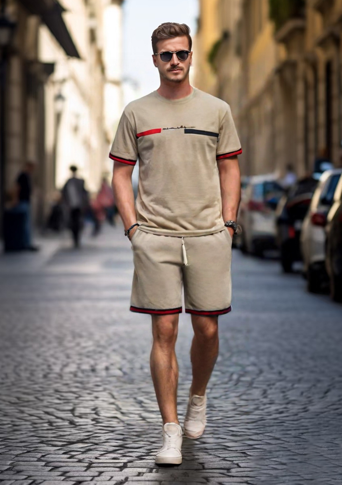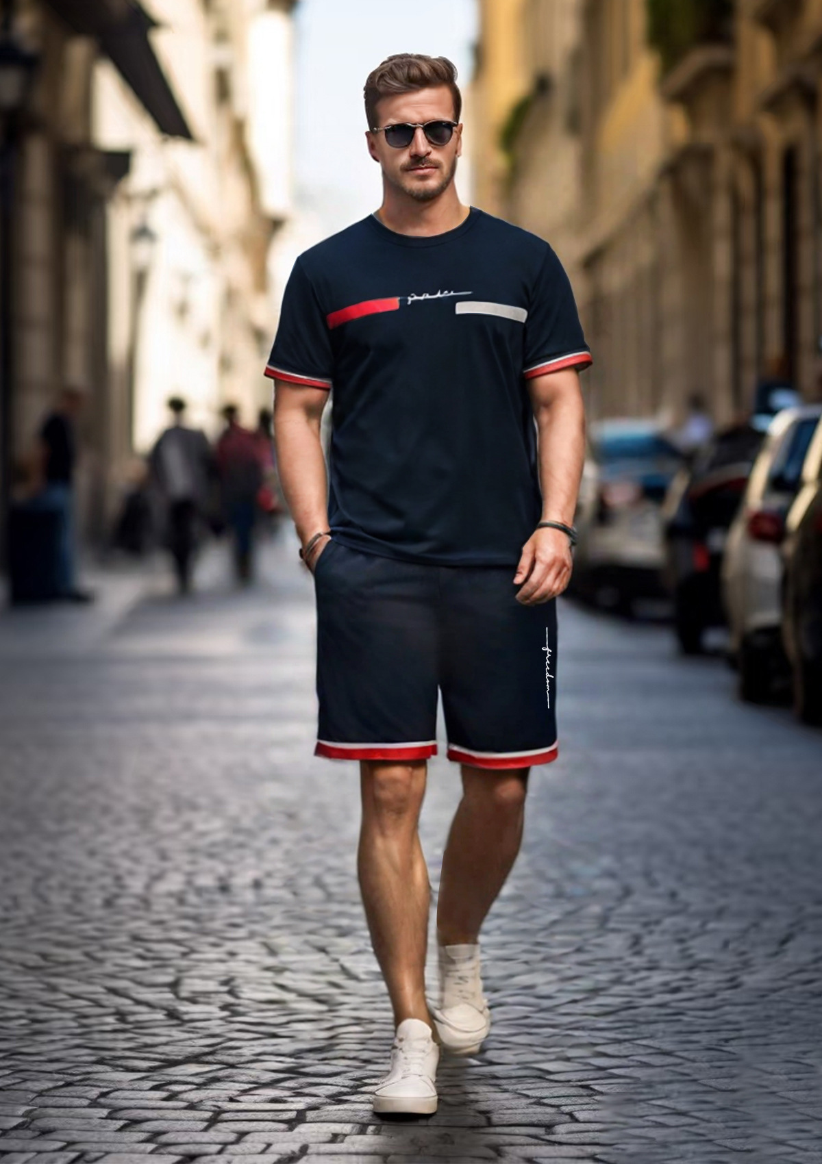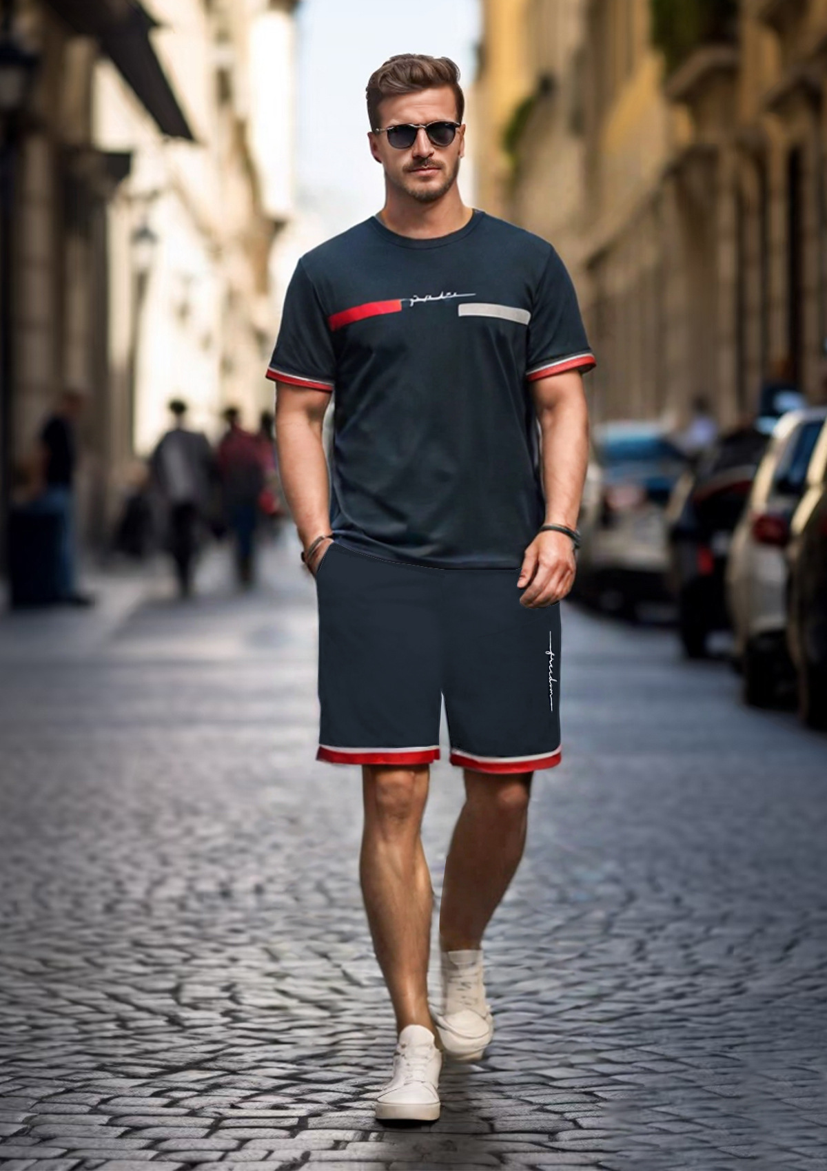2025 크로스보더 새로운 3DT 셔츠 정장 남자 스포츠 투피스 프린트 티셔츠 라운드 넥 반팔 반바지 정장스토어 가기