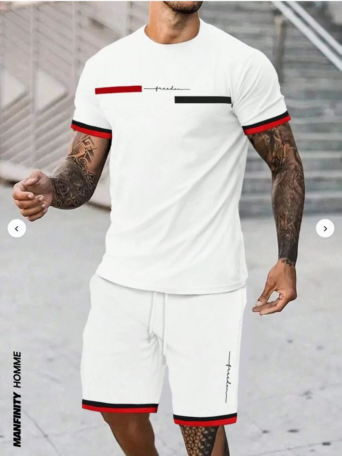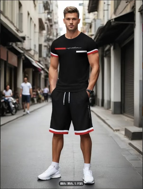 2025 크로스보더 새로운 3DT 셔츠 정장 남자 스포츠 투피스 프린트 티셔츠 라운드 넥 반팔 반바지 정장