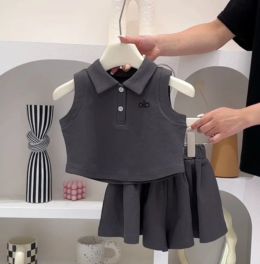 새로운! Tongxingyuan 여성 아동복 유행 서양식 달콤한 쿨 세트 한국식 어린이 얇은 폴로 라젤 세트