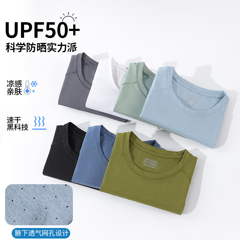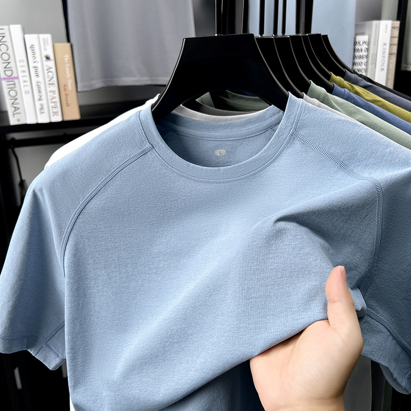 여름 남자 야외 간단한 통기성 반팔 티셔츠 라운드 넥 편안한 쿨 솔리드 컬러 올 매치 스포츠 빠른 건조 탑 T