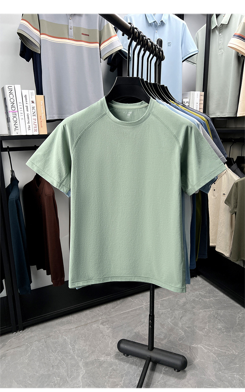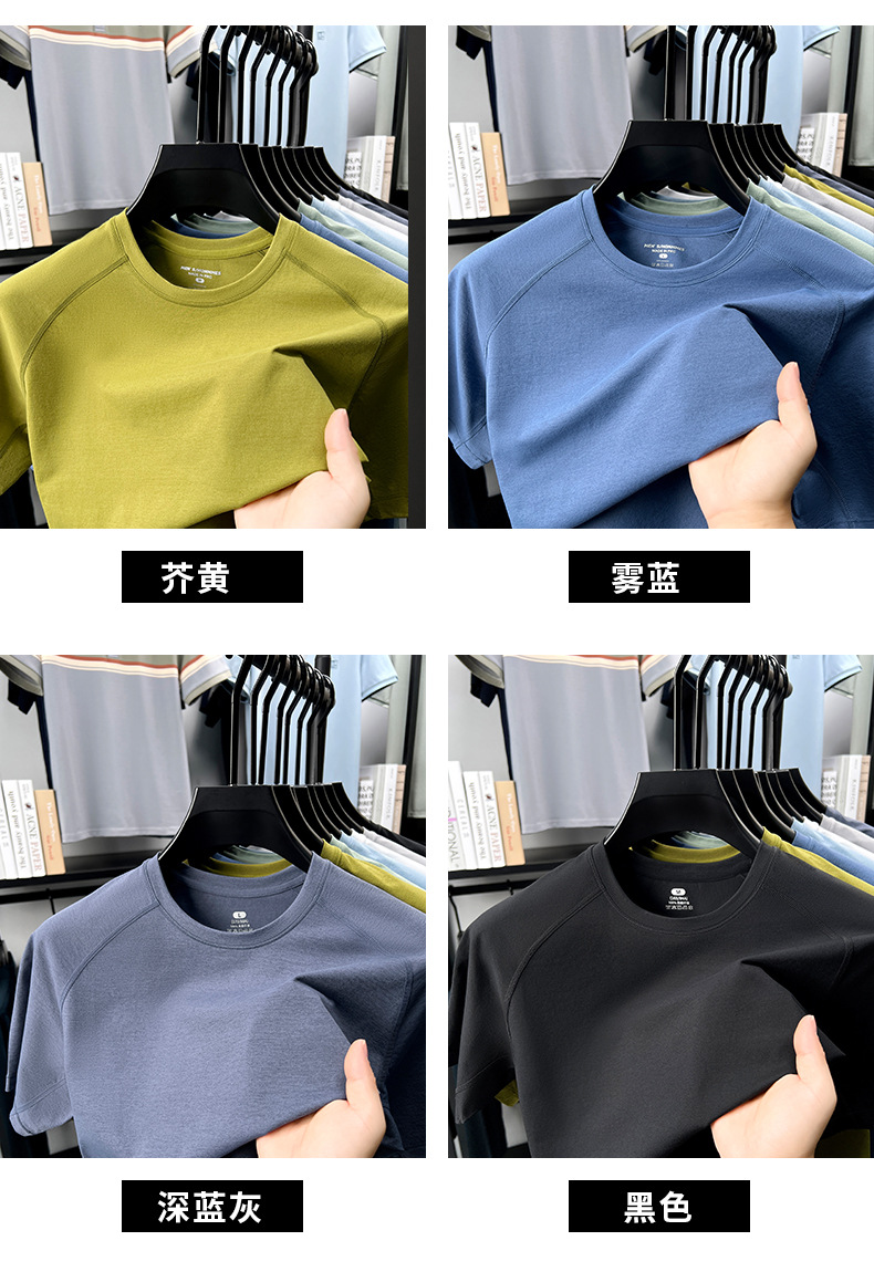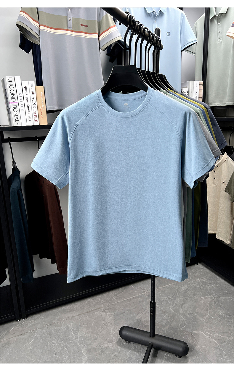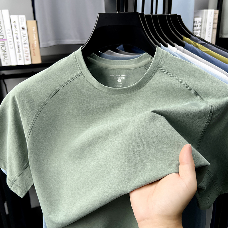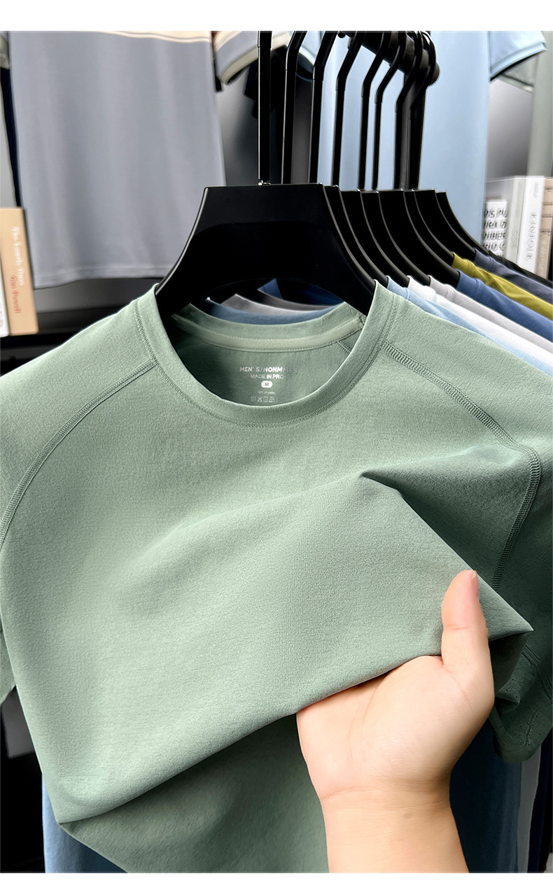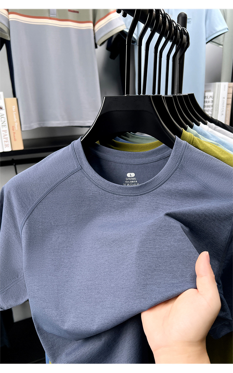 여름 남자 야외 간단한 통기성 반팔 티셔츠 라운드 넥 편안한 쿨 솔리드 컬러 올 매치 스포츠 빠른 건조 탑 T스토어 가기