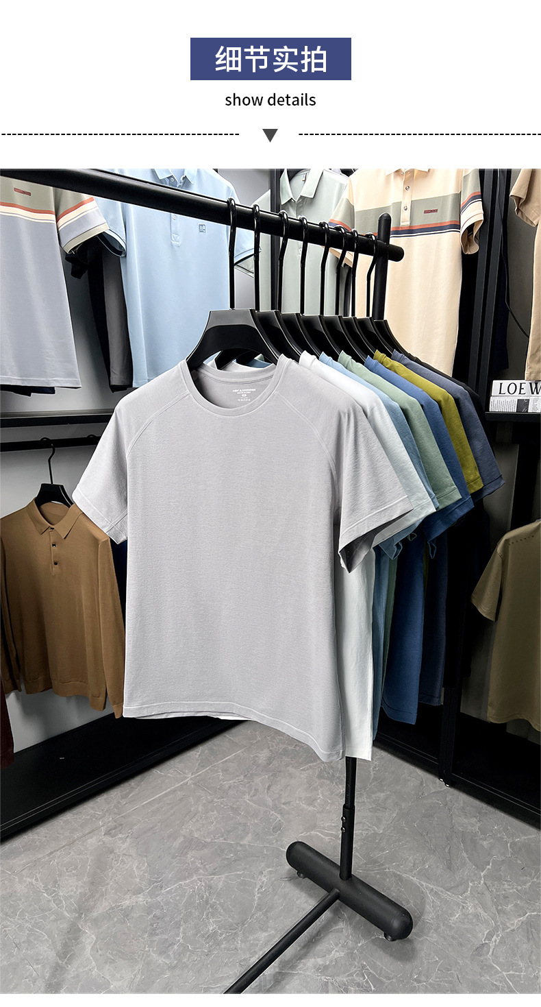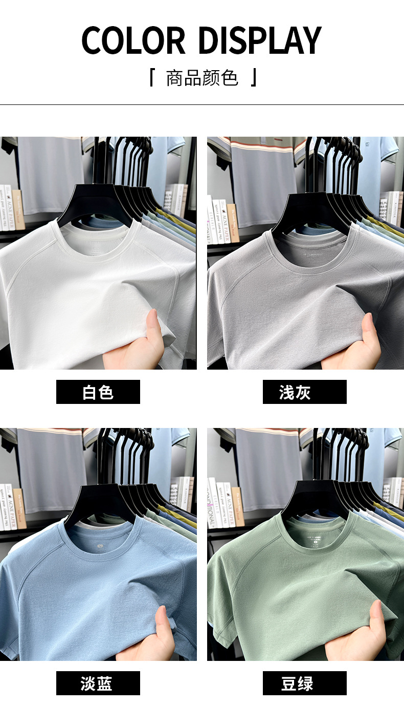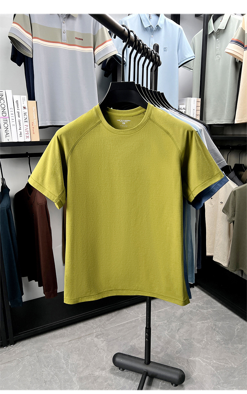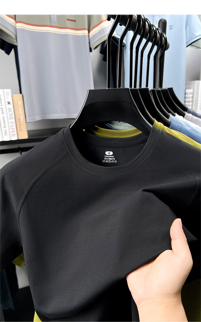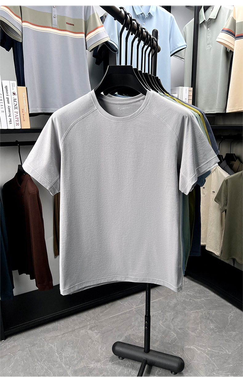 여름 남자 야외 간단한 통기성 반팔 티셔츠 라운드 넥 편안한 쿨 솔리드 컬러 올 매치 스포츠 빠른 건조 탑 T스토어 가기